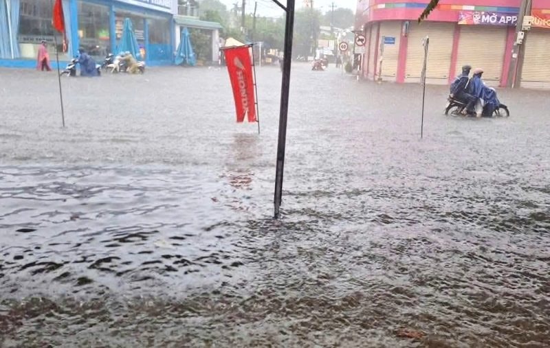 Để đảm bảo an toàn, tại một số nơi có nguy cơ ngập sâu, chính quyền đã cấm phương tiện di chuyển qua khu vực này.