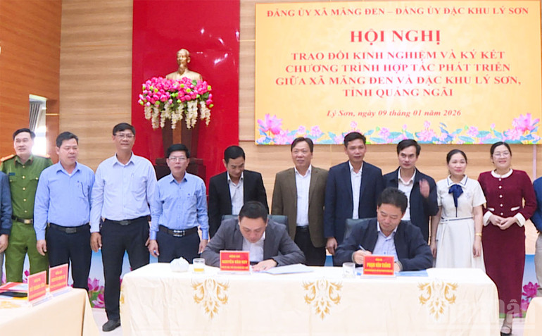 Lãnh đạo đặc khu Lý Sơn và xã Măng Đen ký kết hợp tác phát triển du lịch sinh thái rừng-biển đảo.
