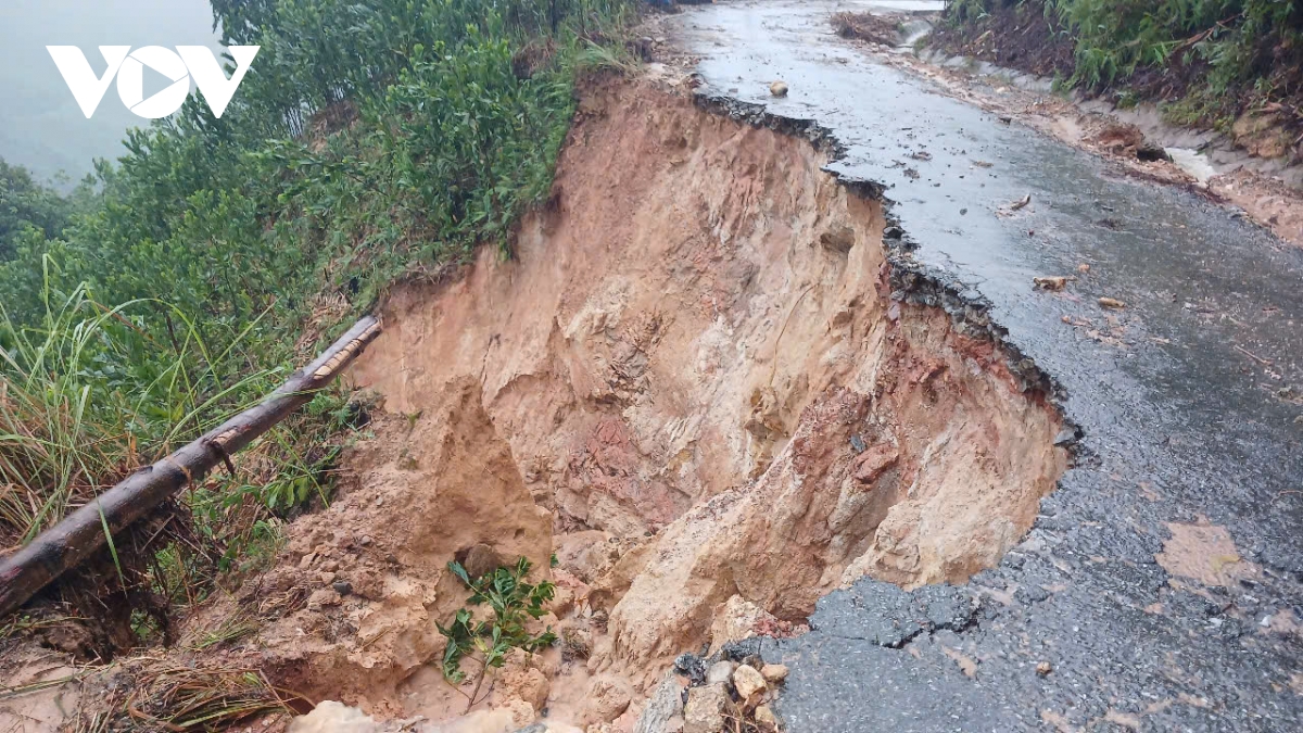 Đường huyện 83 xã Sơn Tây Hạ, tỉnh Quảng Ngãi tiếp tục sạt lở.