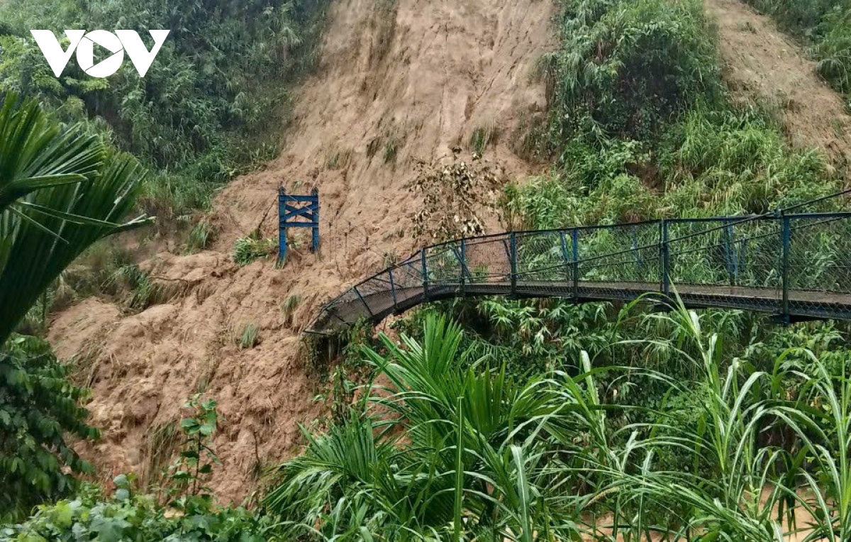 Sạt lở gây chia cắt giao thông ở xã Măng Bút, tỉnh Quảng Ngãi.