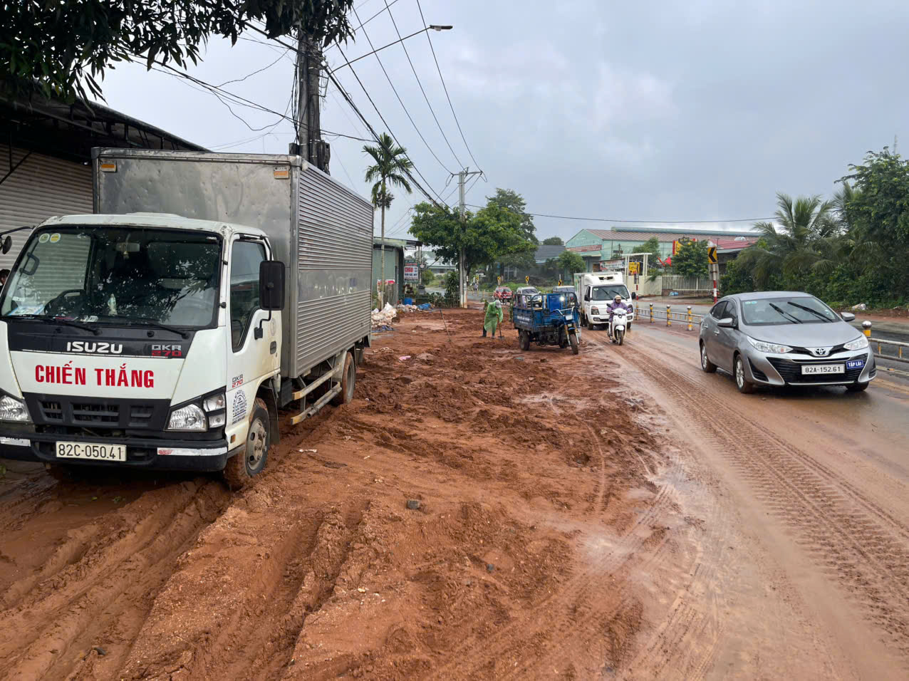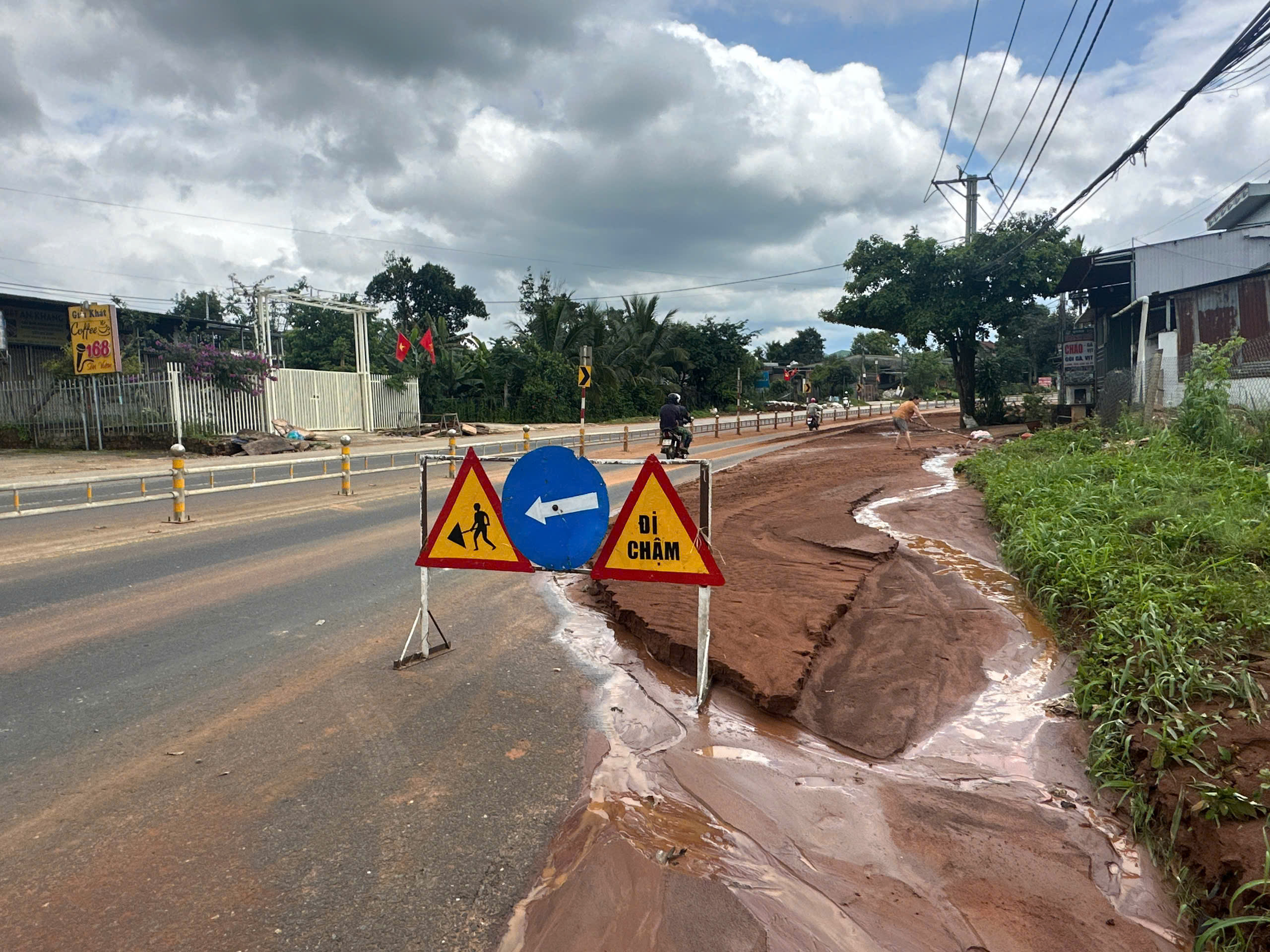 Ghi nhận tại hiện trường, bùn đất tràn xuống phủ lấp một phần lòng đường Hồ Chí Minh, khiến việc lưu thông qua khu vực gặp khó khăn. Lực lượng chức năng đã đặt biển cảnh báo, hướng dẫn phương tiện di chuyển chậm để đảm bảo an toàn.