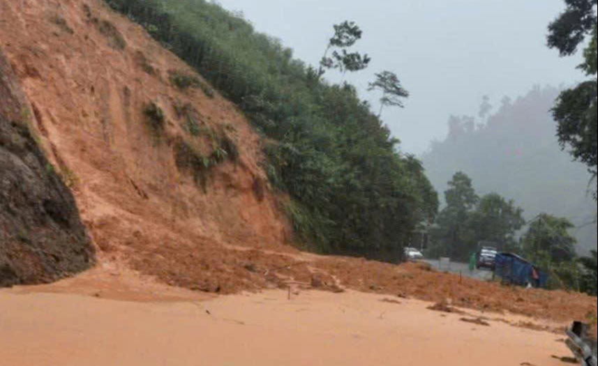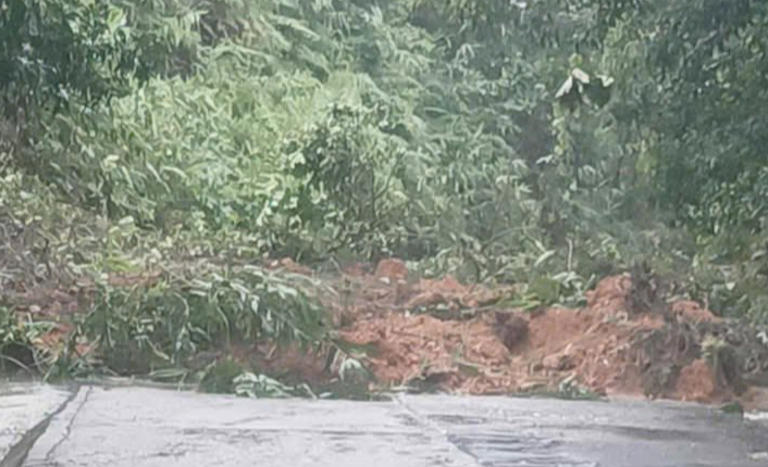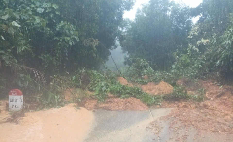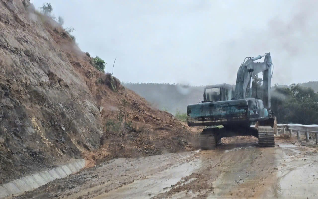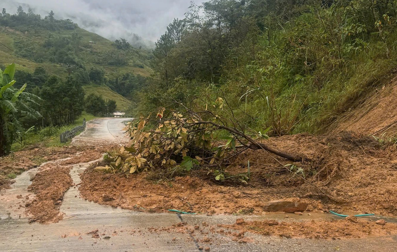 Một điểm sạt lở đất tạo nên túi bùn khổng lồ phủ lấp toàn bộ mặt đường khiến phương tiện không thể qua lại. Nguy cơ sạt lở tiếp diễn khi mưa tiếp tục nặng hạt và những ngọn núi "no nước".