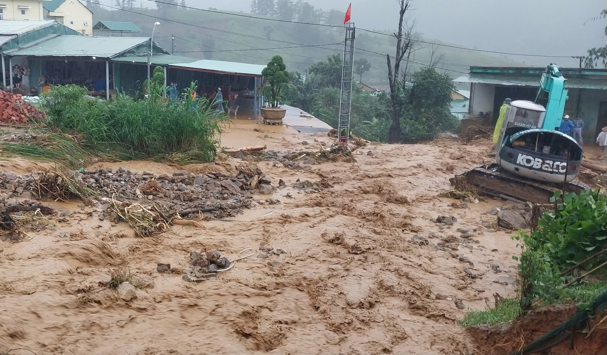 Trong khi đó, tại các xã miền núi phía Tây tỉnh Quảng Ngãi (Kon Tum cũ) mưa lớn gây sạt lở, lũ ống làm hư hỏng hạ tầng giao thông, giao thương ách tắc.