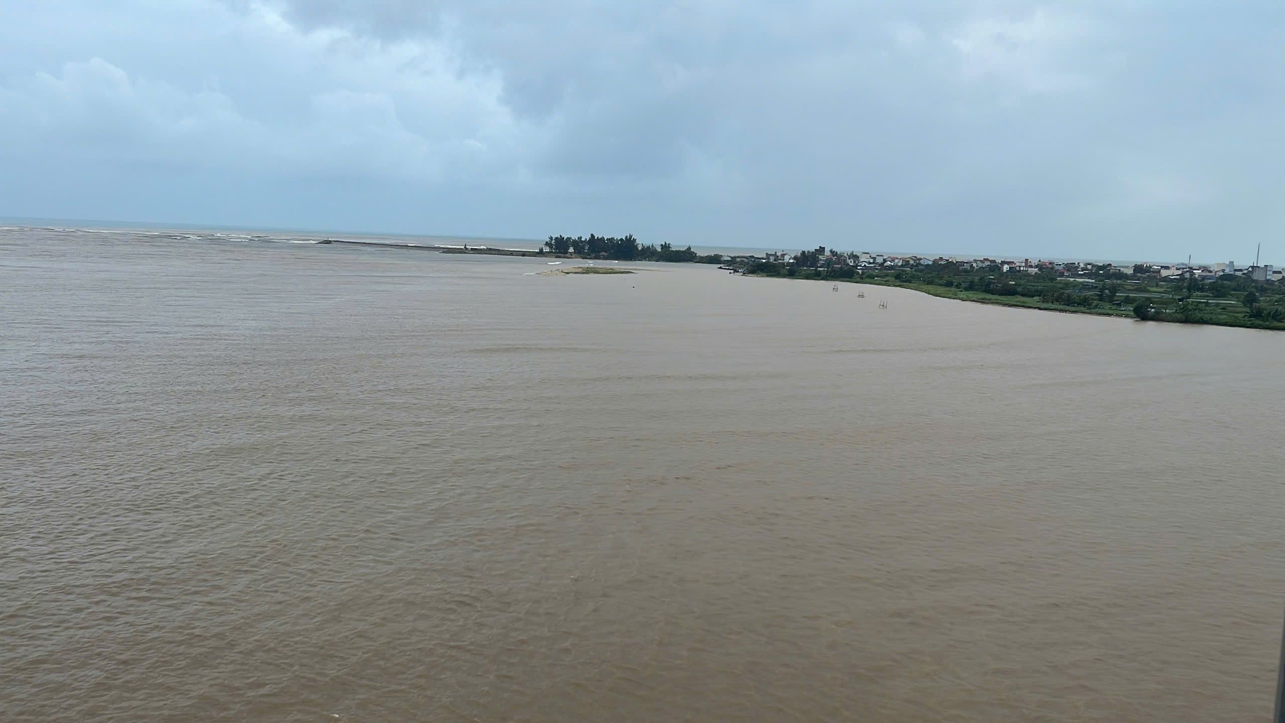 Mực nước trên sông Trà Khúc, nơi đổ ra cửa biển vào chiều ngày 21-10. Ảnh: NGUYỄN TRANG