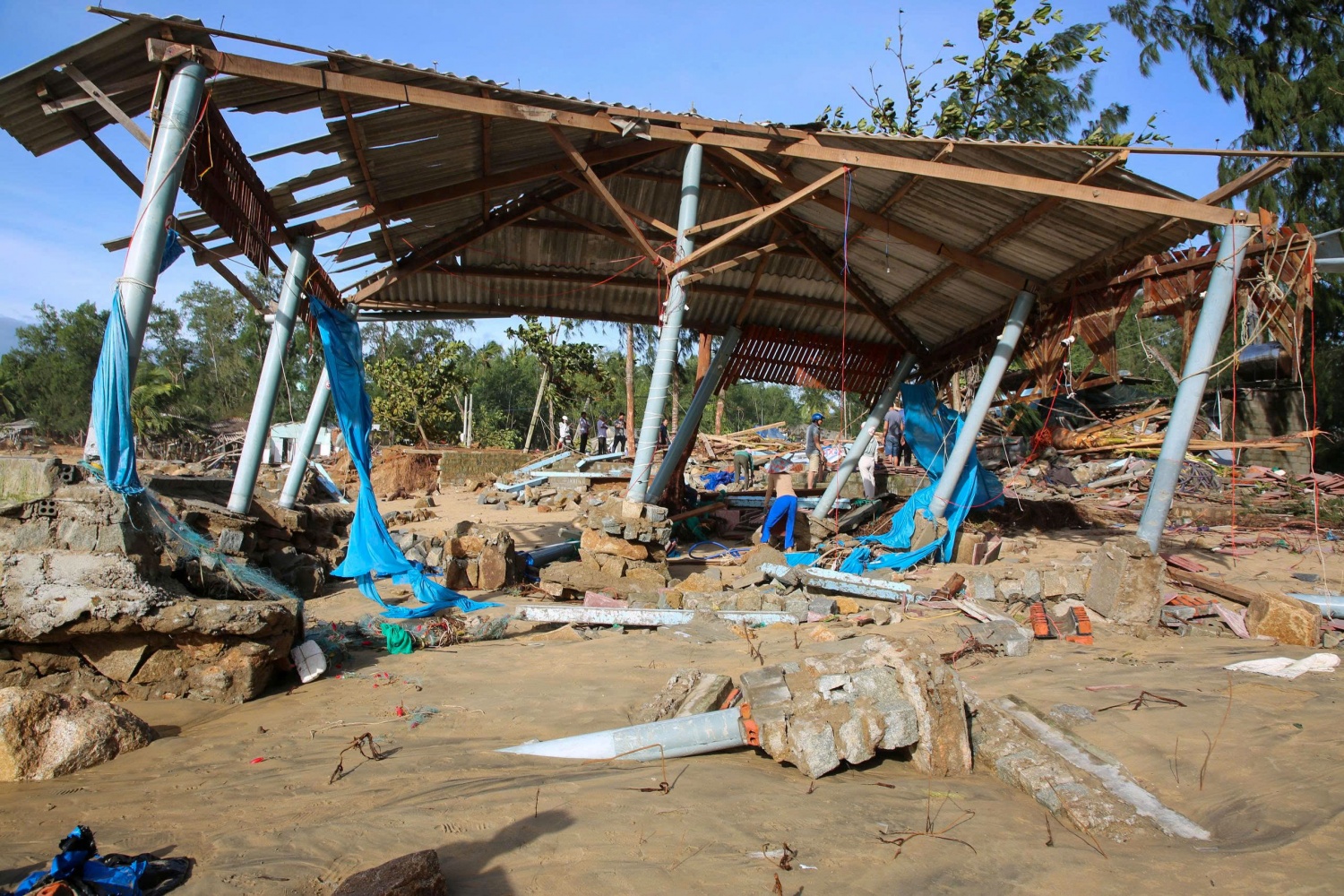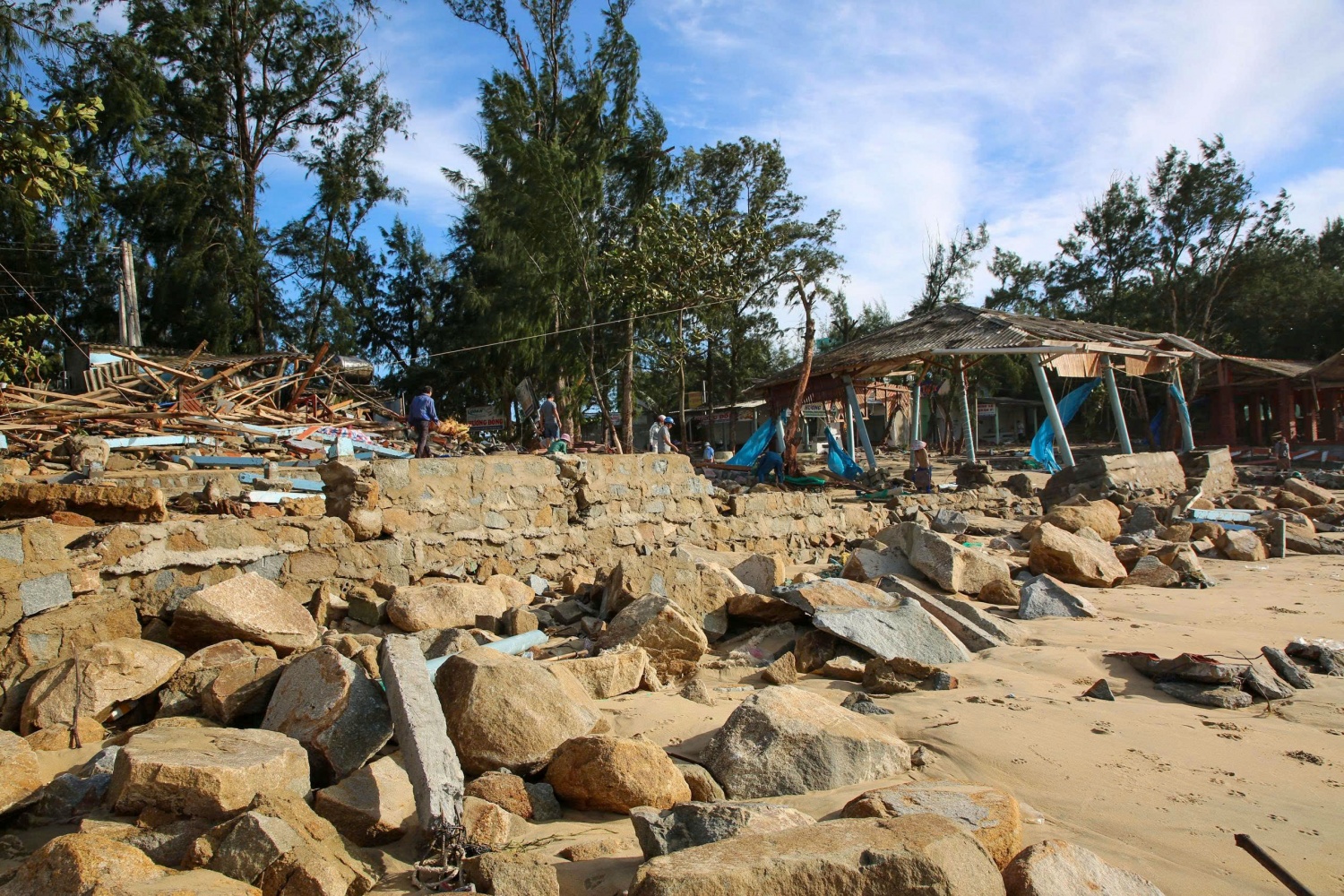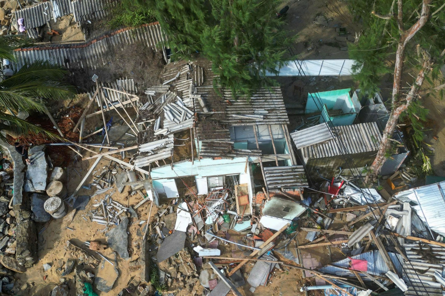 Những căn nhà ven bờ biển Sa Huỳnh (phường Sa Huỳnh,Quảng Ngãi) tan hoang chỉ sau 1 đêm bão số 13 hoành hành.