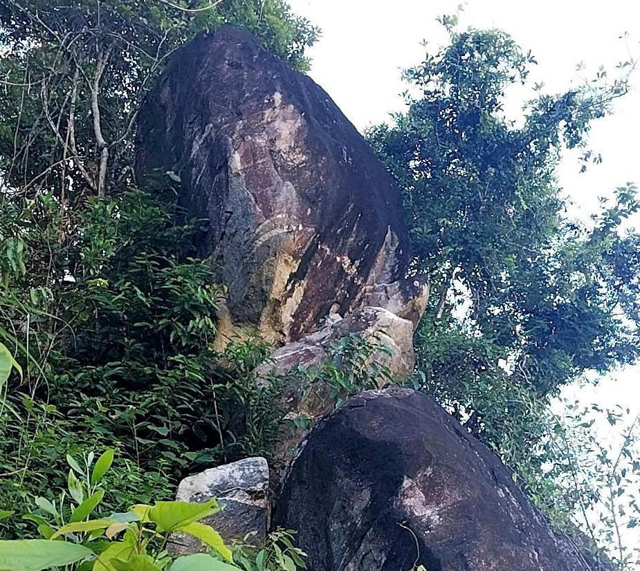 Khối đá nằm chênh vênh ở gần đỉnh núi tại núi Gò Ui. Ảnh: CV.