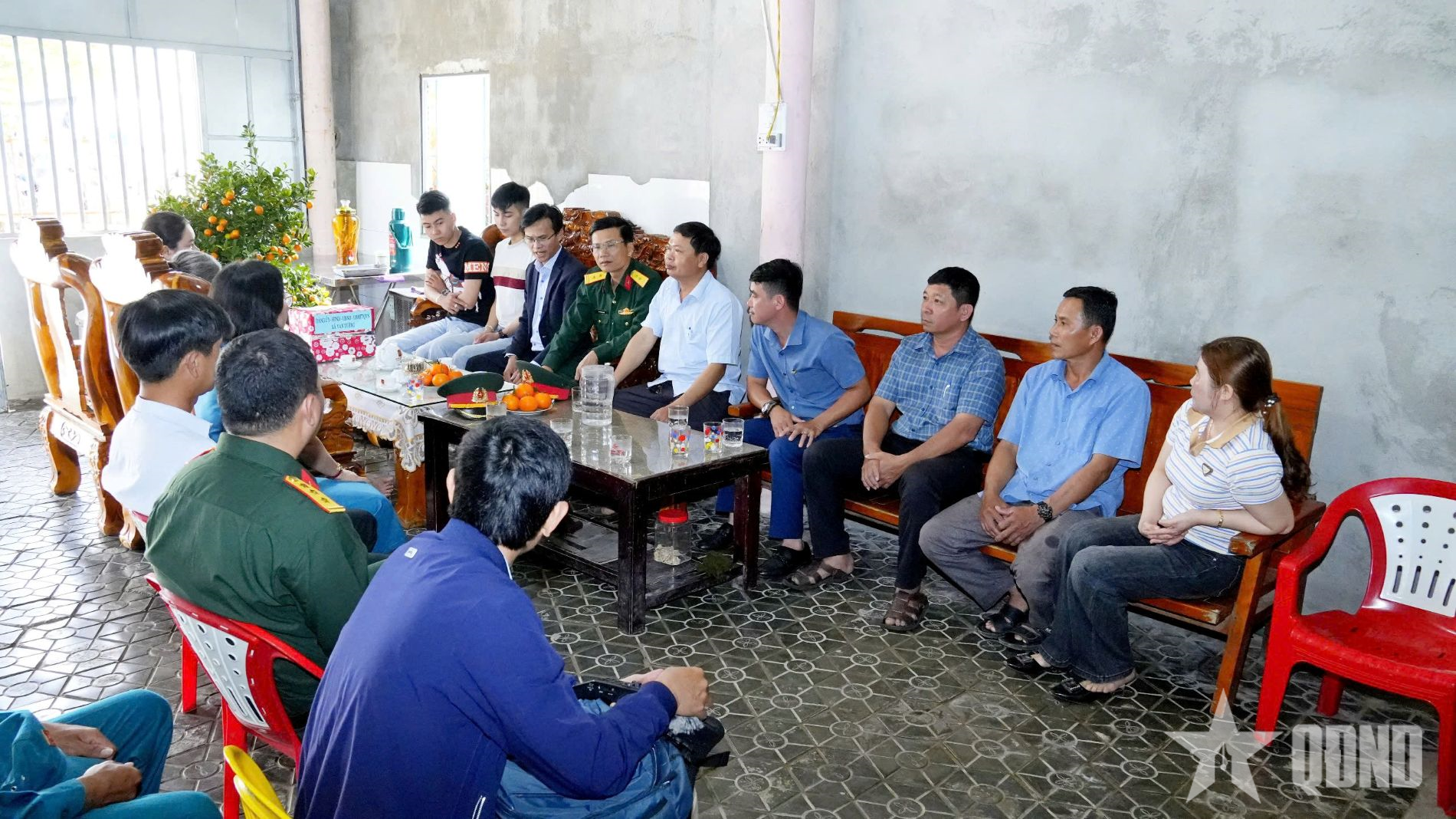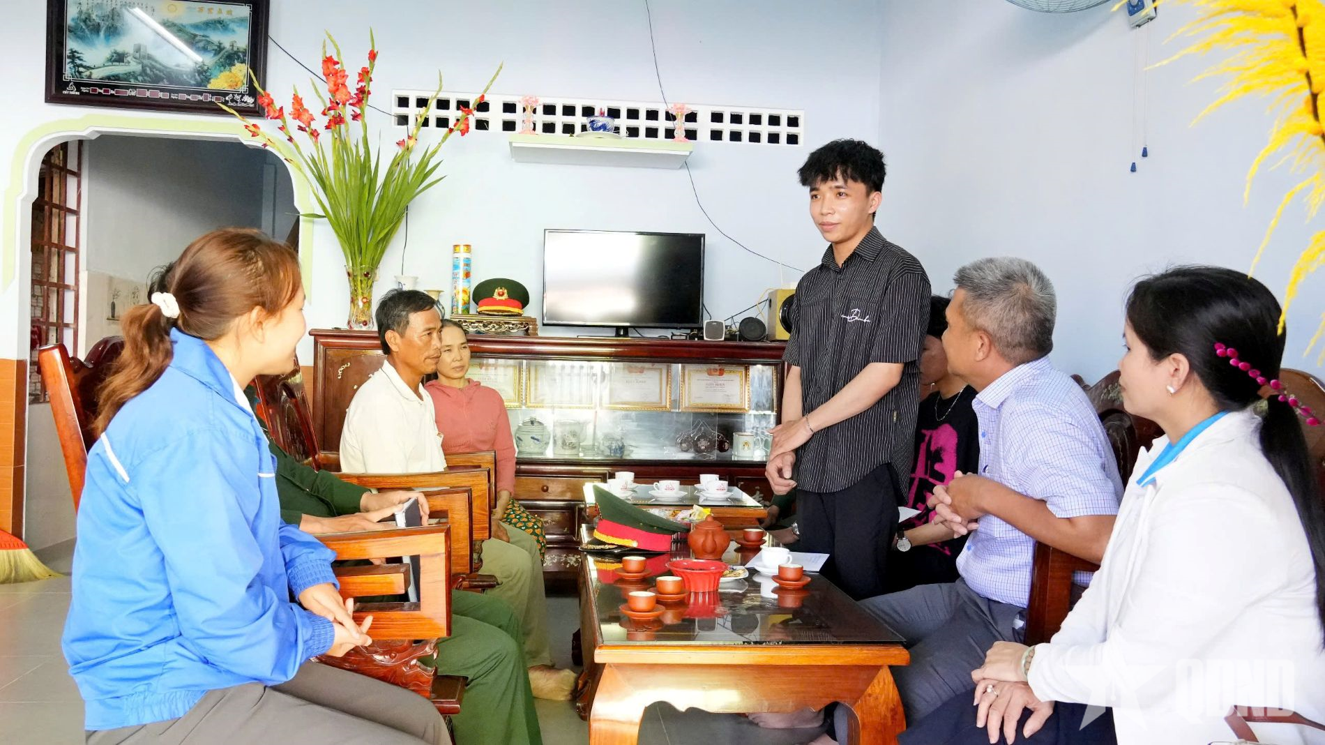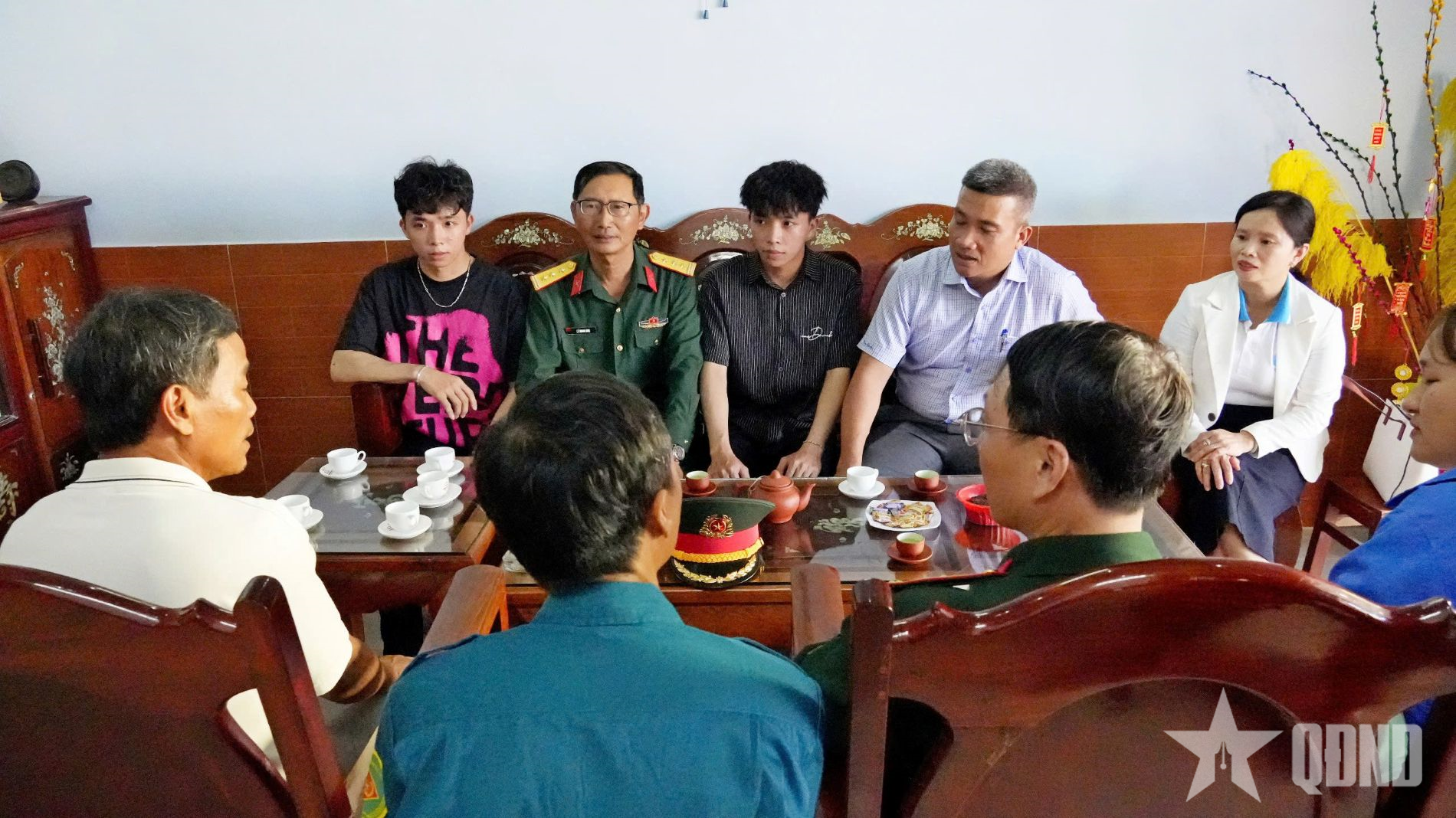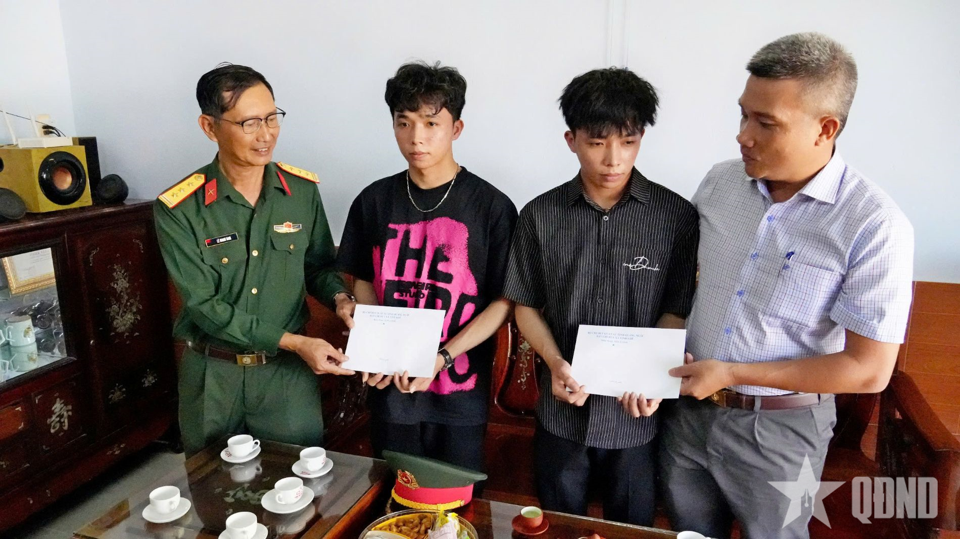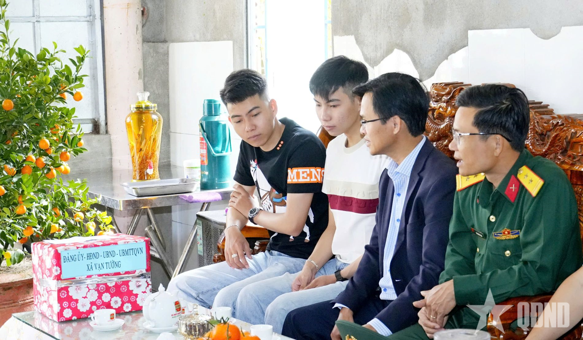 Xã Vạn Tường gặp mặt động viên hai anh em song sinh Lâm Hoàng Mạnh và Lâm Hoàng Cường trước ngày lên đường nhập ngũ.