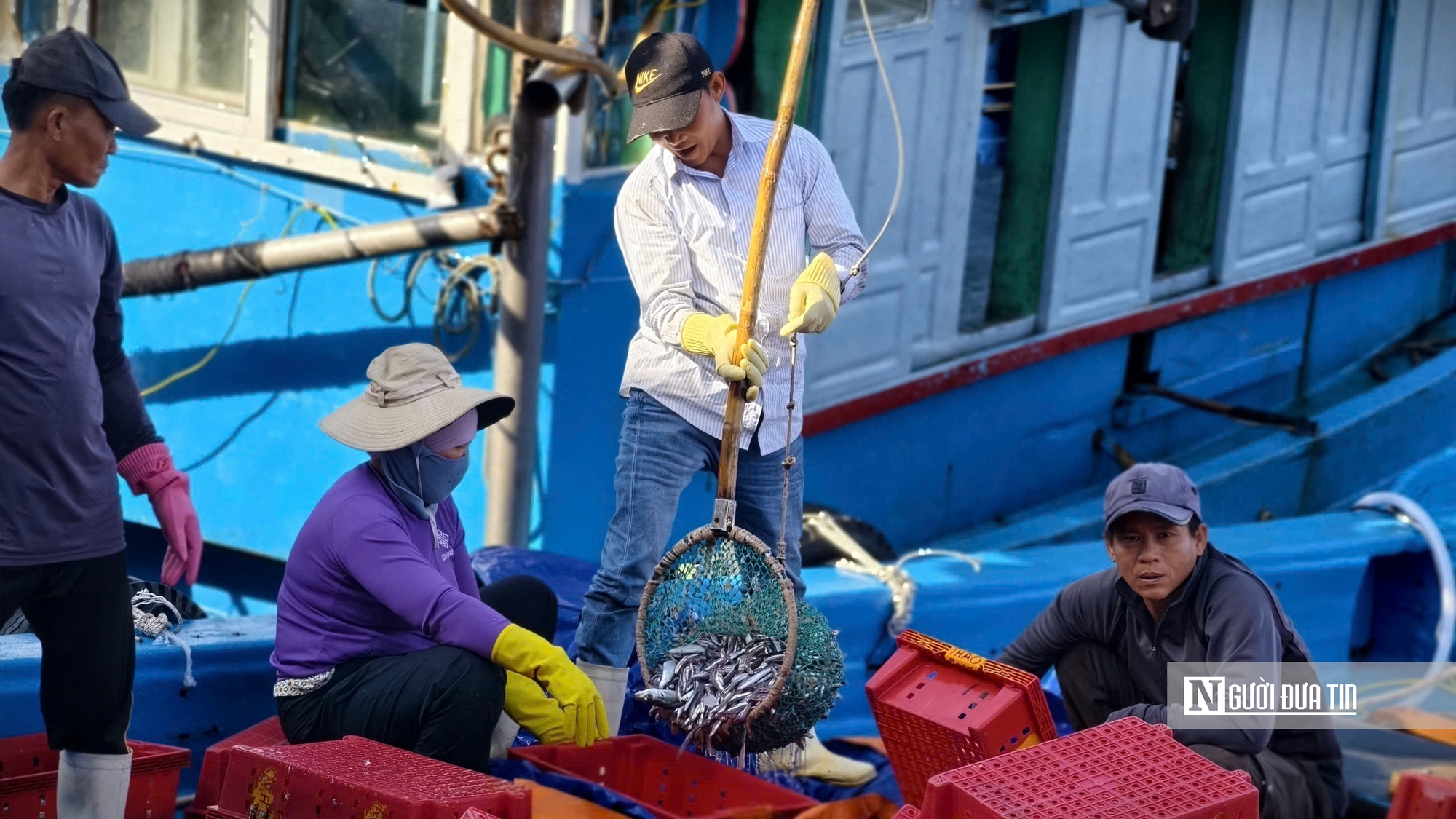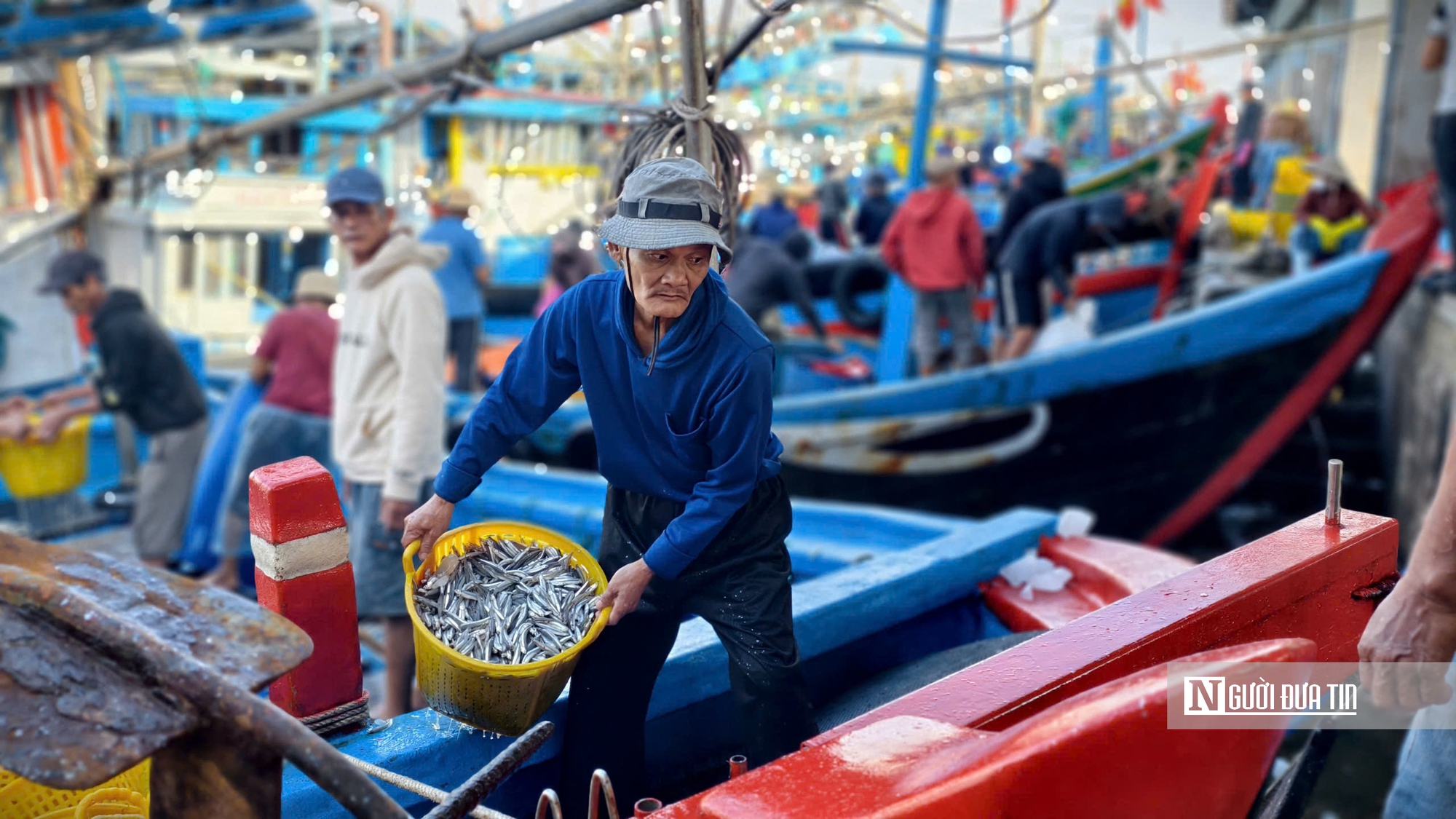 Những ngày cuối năm, tại cảng cá Tịnh Kỳ (xã Tịnh Khê) và cảng cá Sa Kỳ (xã Đông Sơn, tỉnh Quảng Ngãi), các tàu đánh bắt cá cơm liên tục cập bờ. Không khí nhộn nhịp, tất bật hiện hữu ở khắp nơi. Gặp được nhiều luồng cá cơm, các tàu trở về đều đầy ắp cá cơm trong khoang.