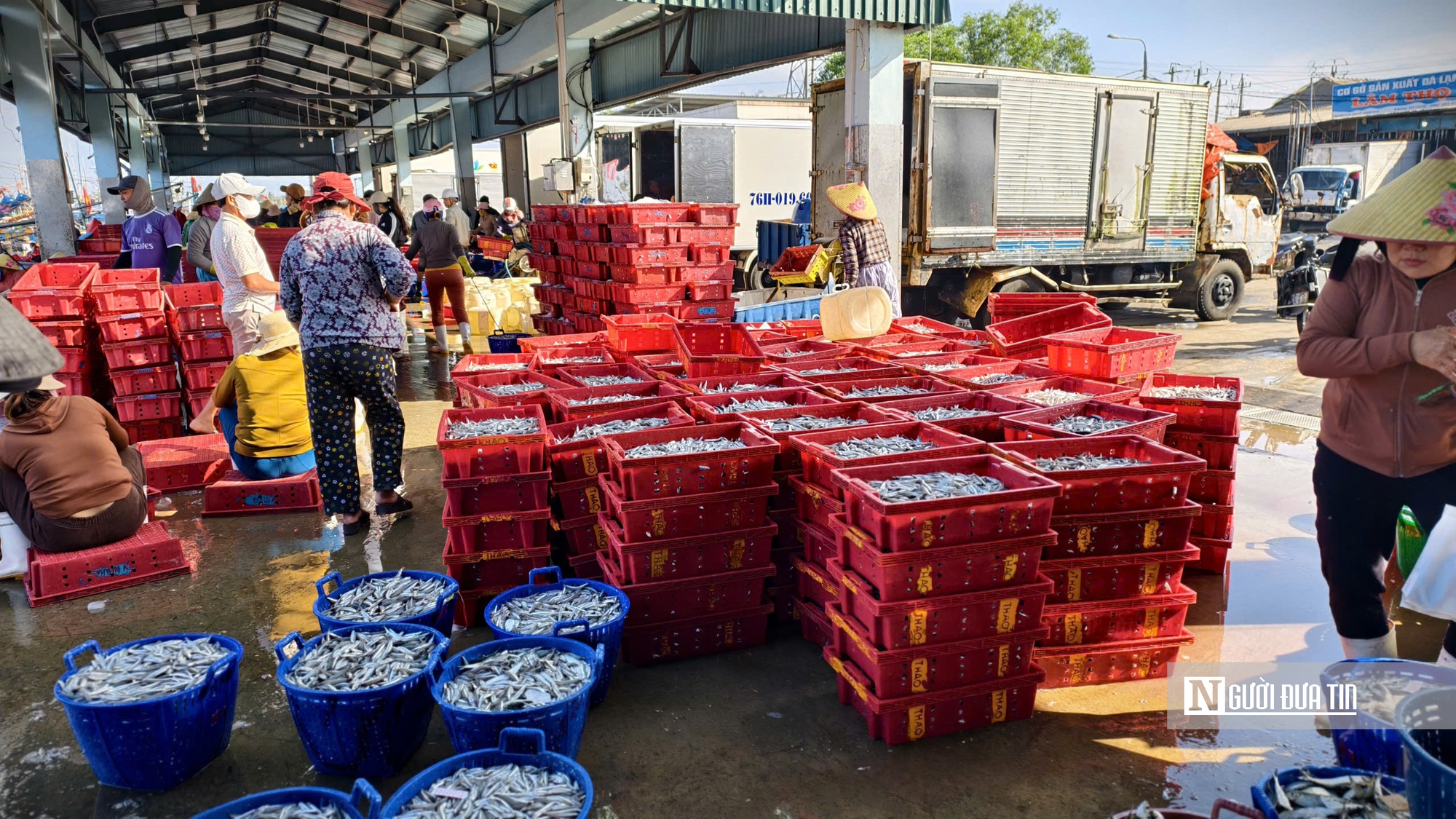 Ghi nhận tại cảng cá Tịnh Kỳ, trong sáng 25/1, có đến hàng chục tàu đánh bắt cá cơm cập cảng để bán cá. Tại đây, không khí làm việc khẩn trương, tất bật từ việc xúc cá, chuyển lên bờ, phân loại, cân ký, chuyển vào các khay nhựa, ướp đá, chuyển lên xe… Hàng ngàn mẻ cá cơm tươi rói được đưa chở đi nhiều nơi ở Tp.Đà Nẵng, Gia Lai…