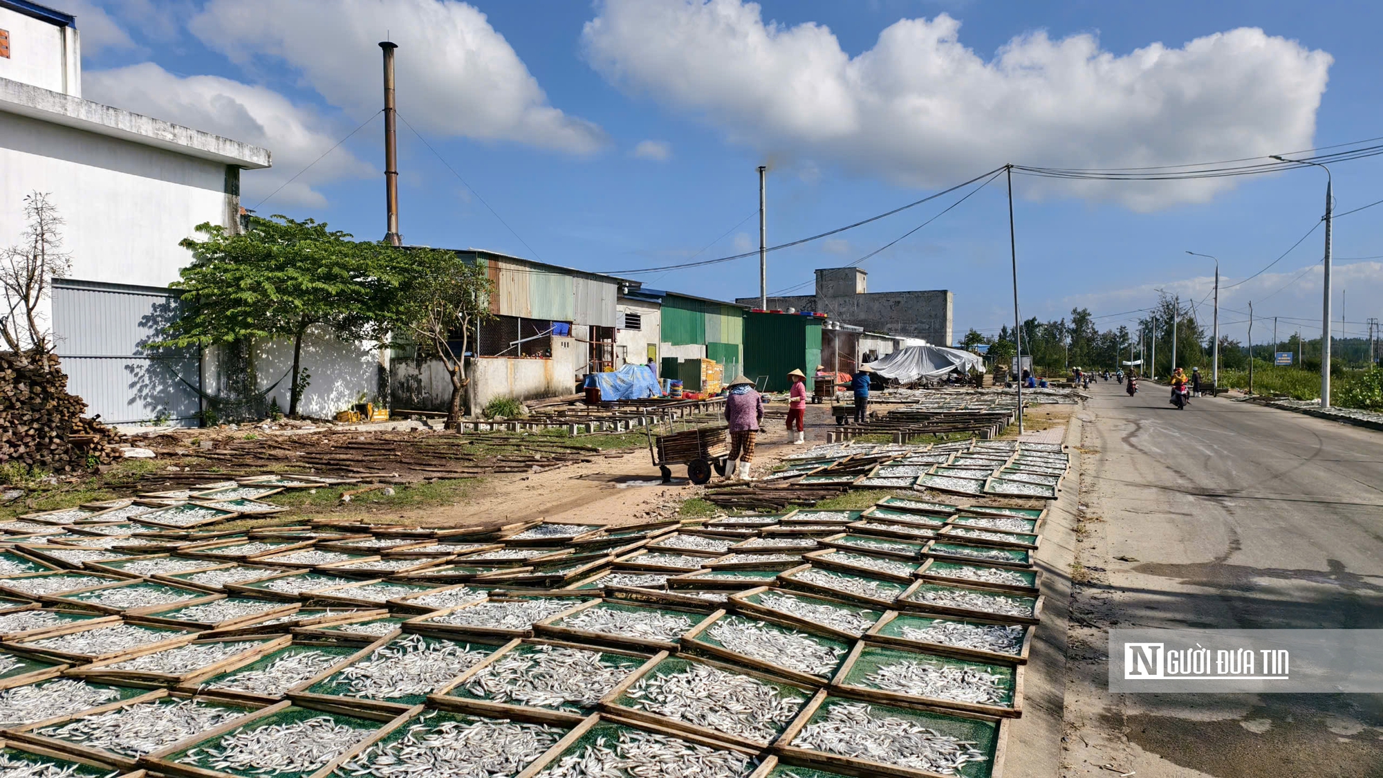 Tại khu vực xung quanh cảng cá, nhiều cơ sở phơi cá cơm khô nhập trực tiếp cá cơm từ cảng. Sau đó, họ đem hấp rồi trải ra phên, phơi khô để xuất khẩu hoặc bán trong nước.