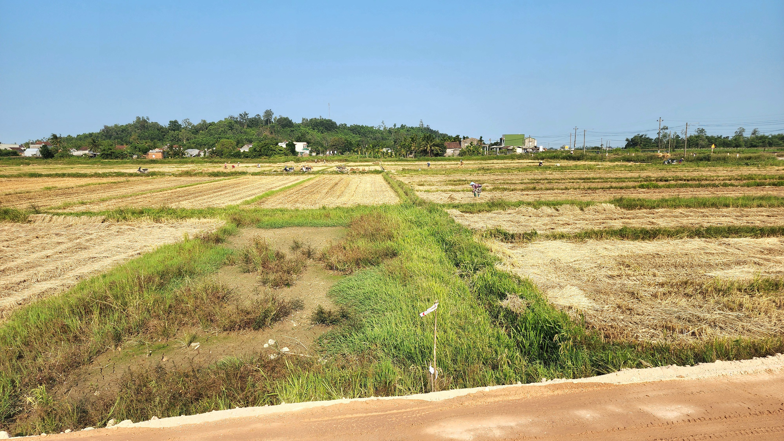 Trong khi đó, để triển khai dự án tỉnh Quảng Ngãi phải di dời, giải tỏa và tái định cư cho khoảng 650 trường hợp tại 10 khu TĐC xây dựng mới và một số khu TĐC đã có sẵn. Tuy nhiên, đến nay các khu TĐC mới vẫn là những khu đất trống - Trong ảnh; Khu vực được quy hoạch thi công khu TĐC Đông Thiên Ấn vẫn là đồng ruộng.