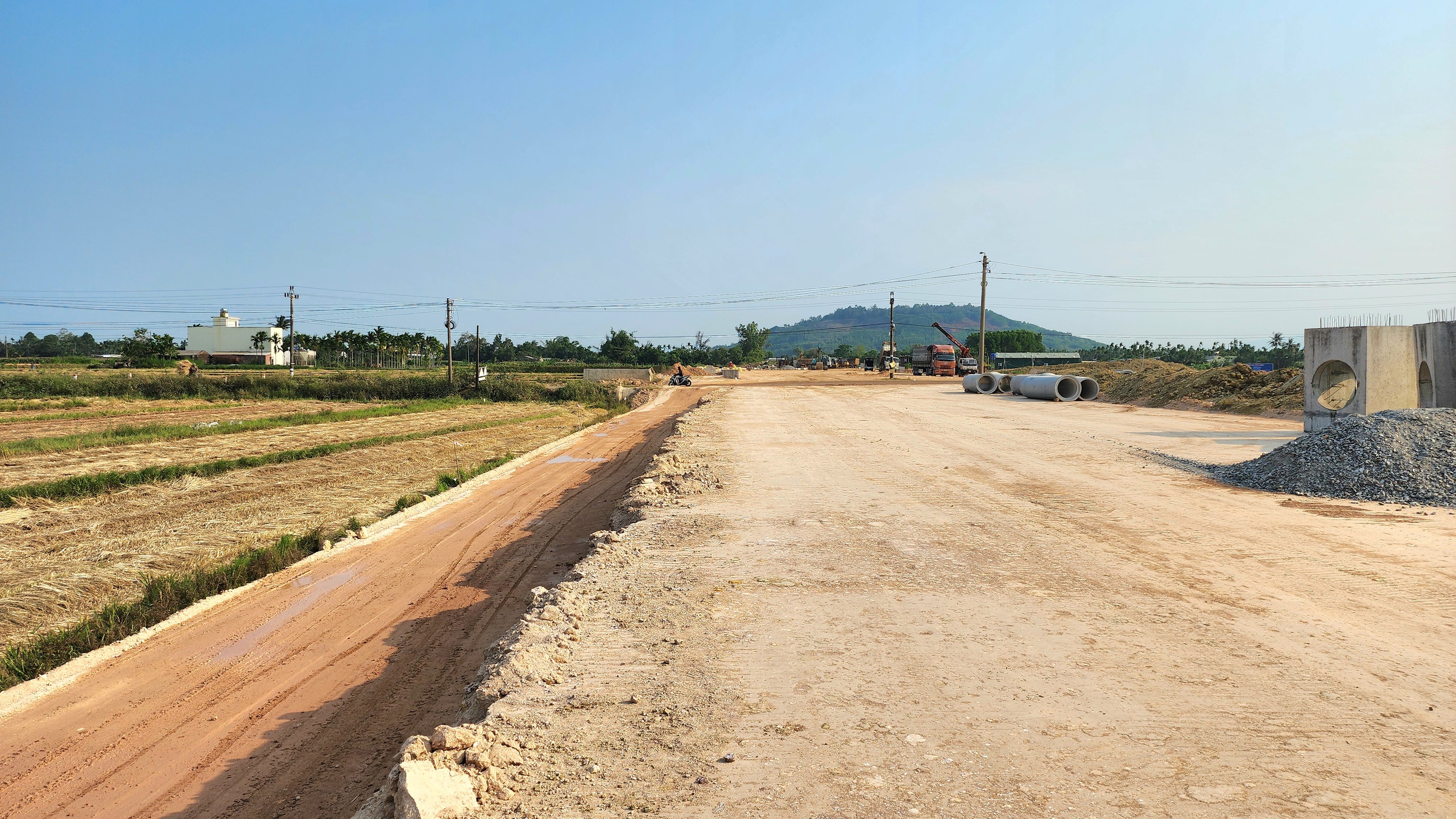 Cũng theo ông Quân, đơn vị đang nỗ lực từng ngày, phối hợp cùng chủ đầu tư, địa phương cùng tháo gỡ vướng mắc mặt bằng để tăng tốc thi công, tận dụng từng ngày nắng nhằm gia tăng sản lượng trên công trường. Nỗ lực đến cuối năm 2026 sẽ cơ bản hoàn thiện công tác nền đường, rải cấp phối, một số đoạn thuận lợi sẽ thảm bê tông nhựa lớp một.
