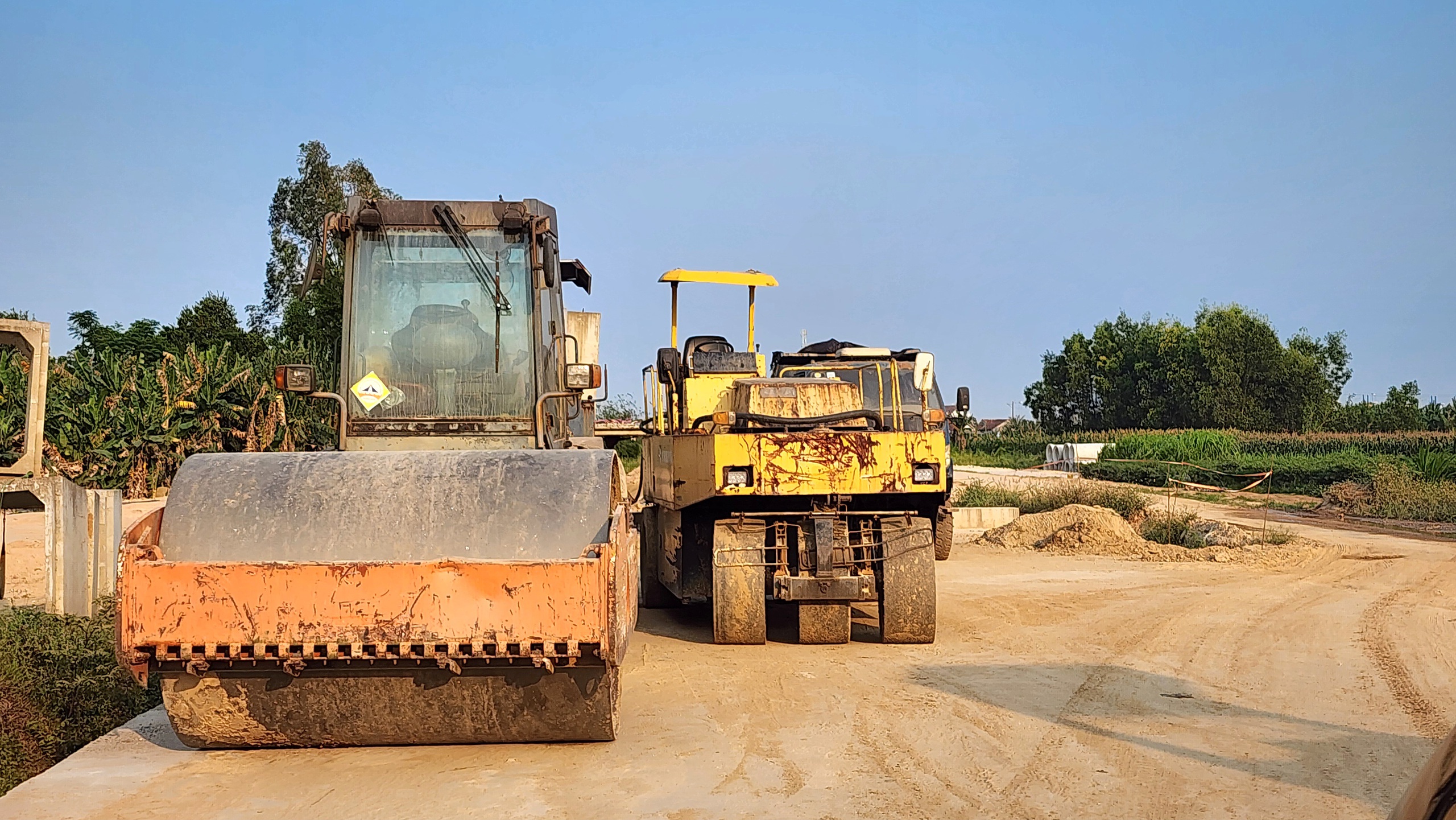Dọc công trường dự án, nhiều thiết bị máy móc được nhà thầu bố trí đến công trường nhưng "chưa có việc làm".