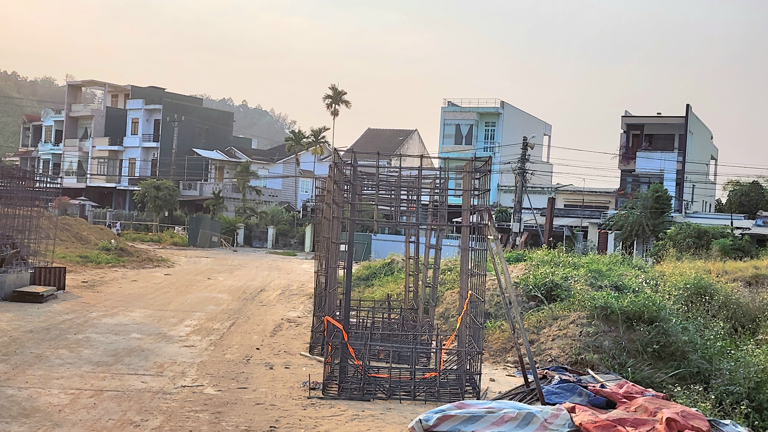 Tại vị trí cuối tuyến giao với đường Hoàng Sa qua địa bàn phường Trương Quang Trọng, mặt bằng trong tình trạng "xôi đỗ". Nơi đắp đất gần đạt cao trình thiết kế, nơi vẫn là vườn tược, nhà cửa của người dân.