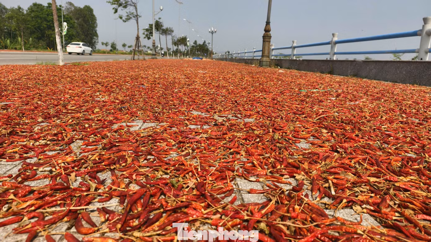 Nông dân phơi ớt đợi giá cao để bán.