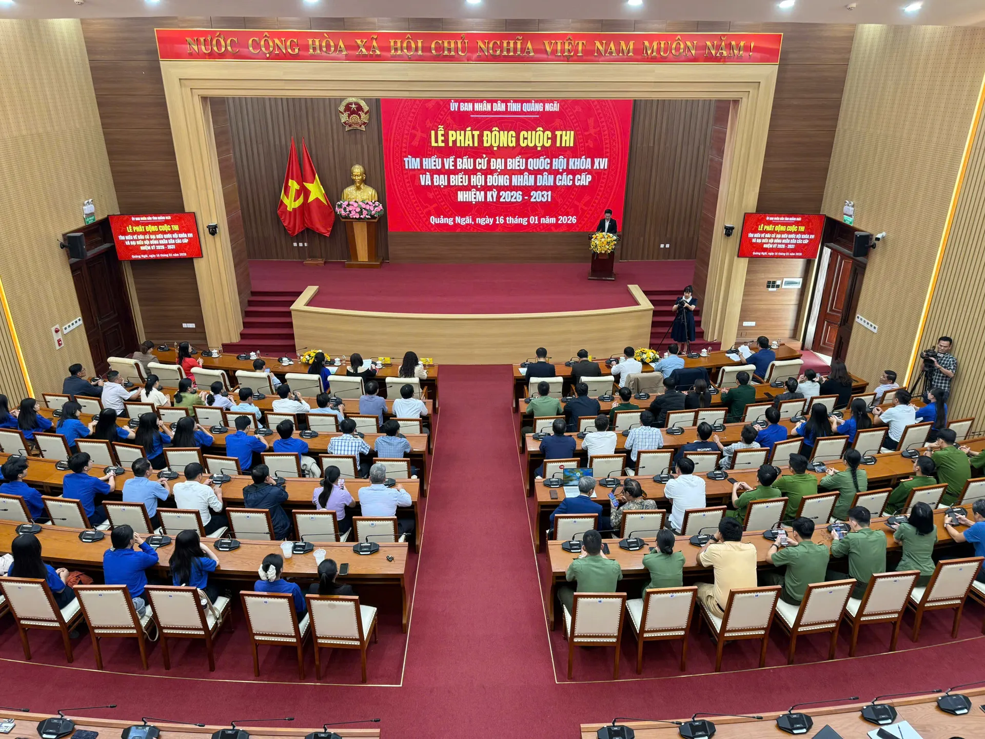 Chiều 16/1, UBND tỉnh Quảng Ngãi tổ chức Lễ phát động cuộc thi trực tuyến “Tìm hiểu về bầu cử đại biểu Quốc hội khóa XVI và đại biểu Hội đồng nhân dân các cấp nhiệm kỳ 2026-2031”, kết nối từ điểm cầu tỉnh đến 96 xã, phường, đặc khu trên địa bàn.