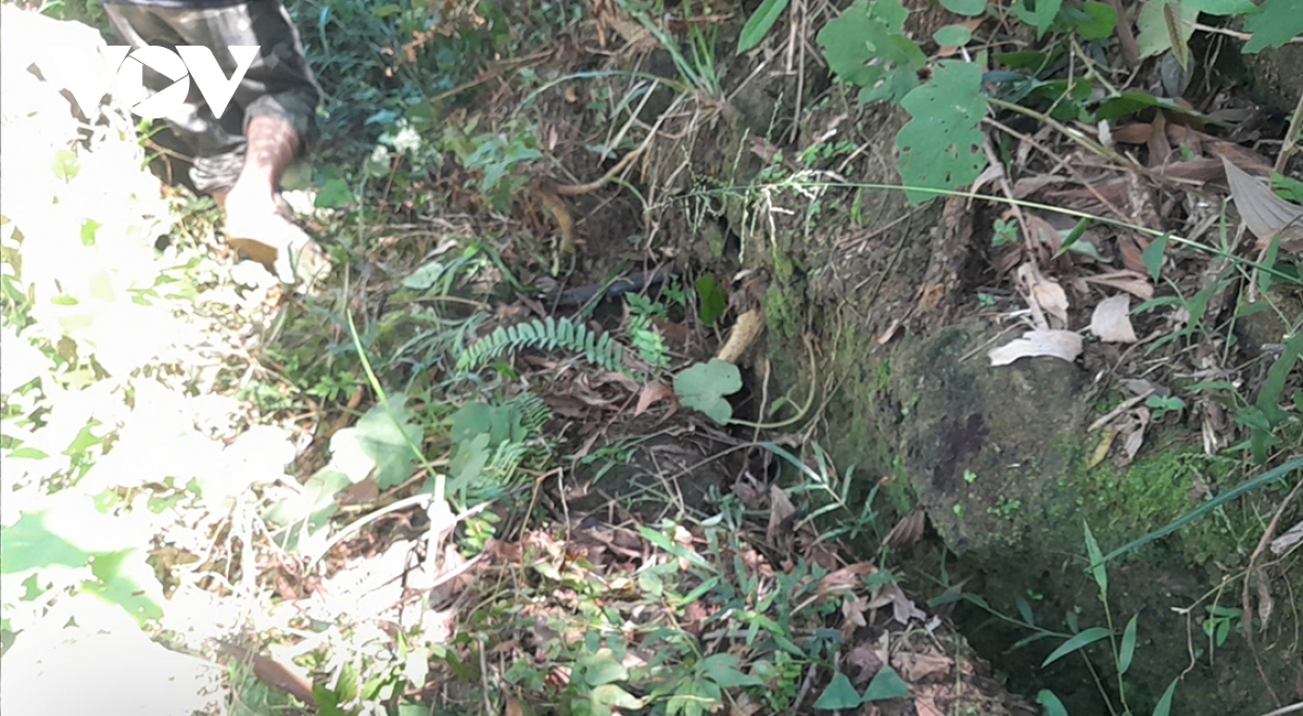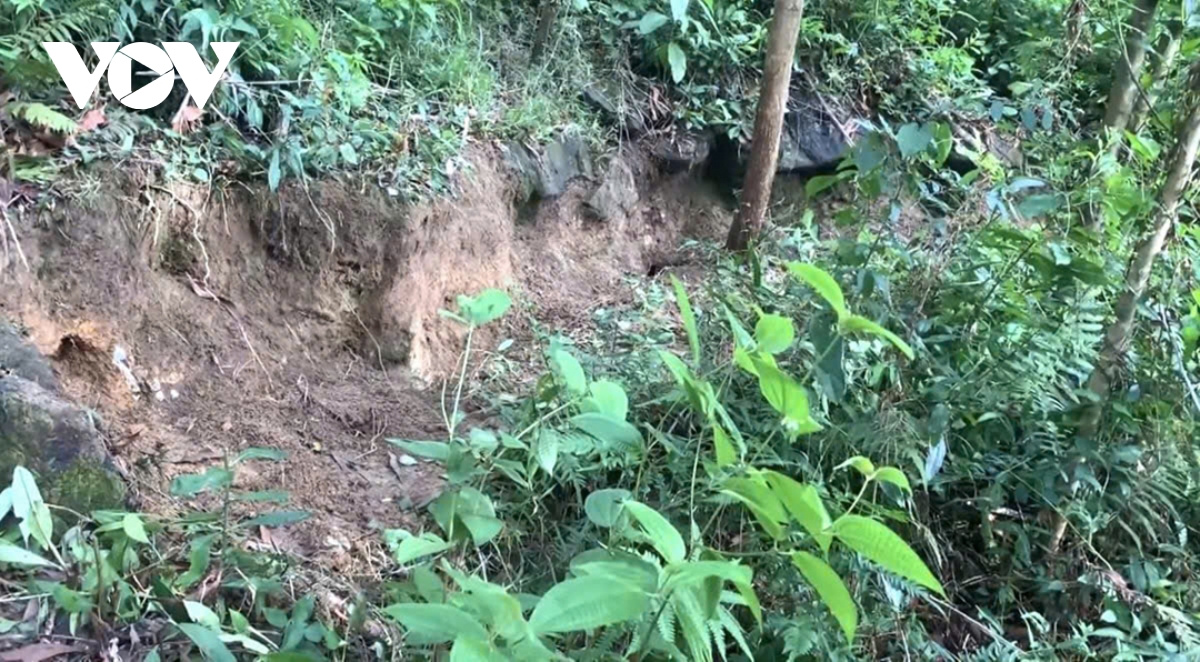 Những vết nứt trên sườn núi được người dân phát hiện cách đây 4 năm. Hằng năm, vào mùa mưa thường xuất hiện nhiều mạch nước ngầm trên núi chảy ra, đe dọa cuộc sống người dân.