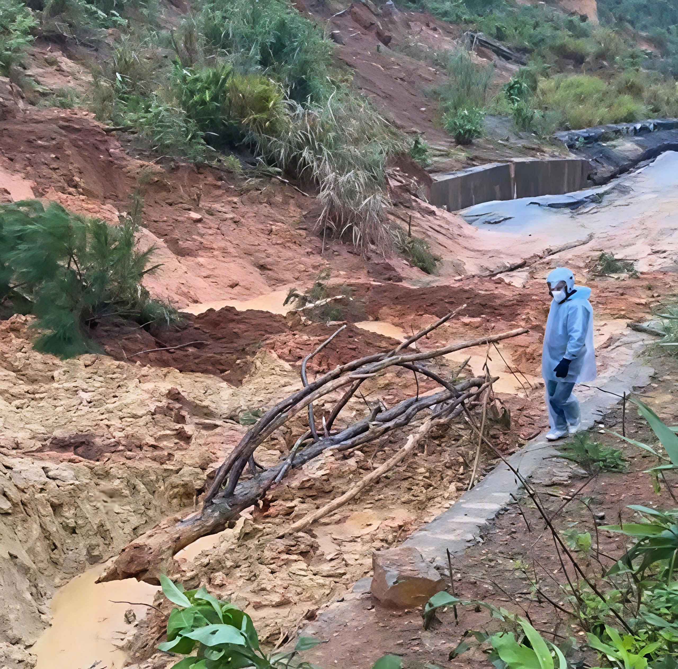 Đoạn đường bị sạt lở dài khoảng 60m, độ cao khối sạt từ 3,5–4m. Sở Xây dựng Quảng Ngãi đang đã huy động 2 xe múc khẩn trương đến hiện trường, triển khai san gạt ở hai đầu điểm sạt lở để sớm thông tuyến. Do sạt lở, rất nhiều phương tiện không thể di chuyển, đậu hàng dài 2 đầu đoạn đường. Ngành chức năng khuyến cáo người tham gia giao thông tạm thời chọn lộ trình khác để đảm bảo an toàn.