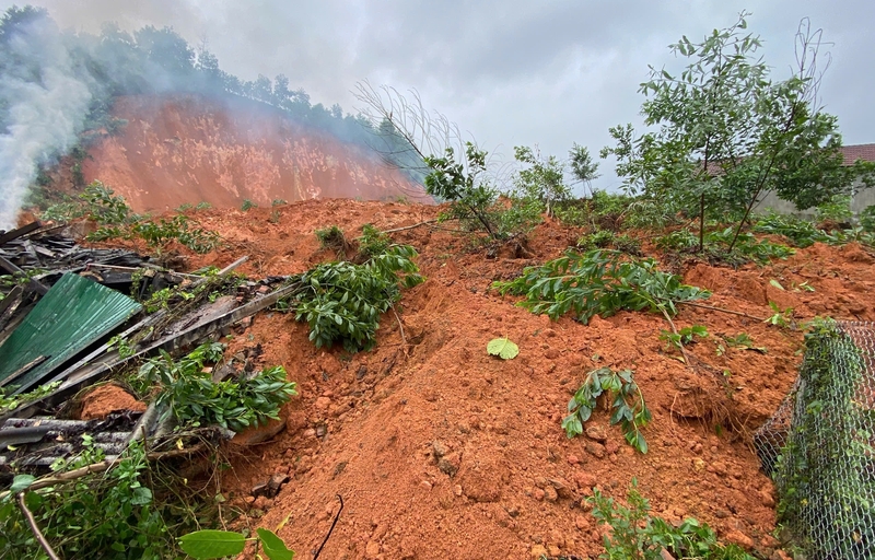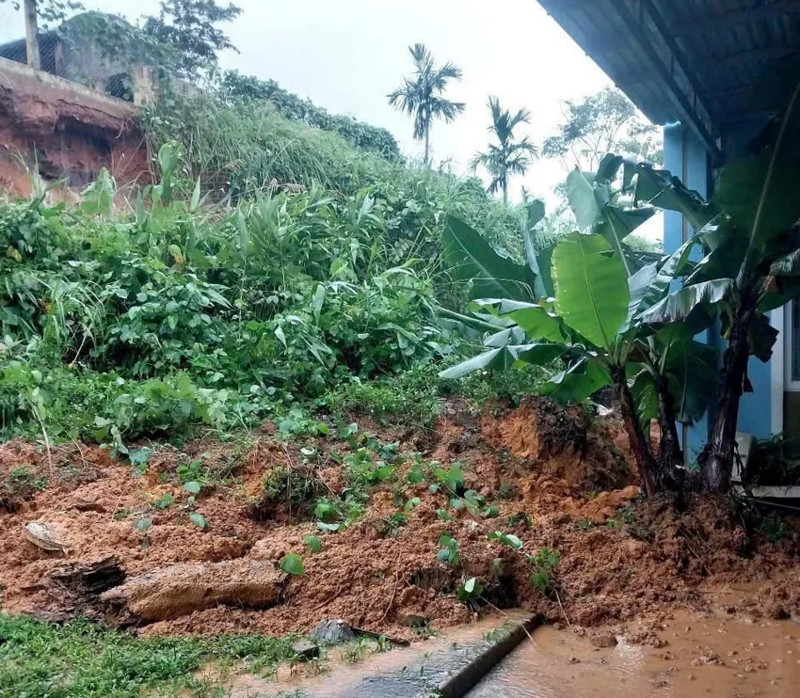Khối đất đá khổng lồ tràn xuống, gây nguy hiểm nghiêm trọng, đe dọa an toàn toàn bộ khu nhà, buộc nhà trường phải ngừng sử dụng toàn bộ khu nhà.