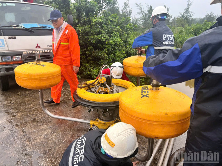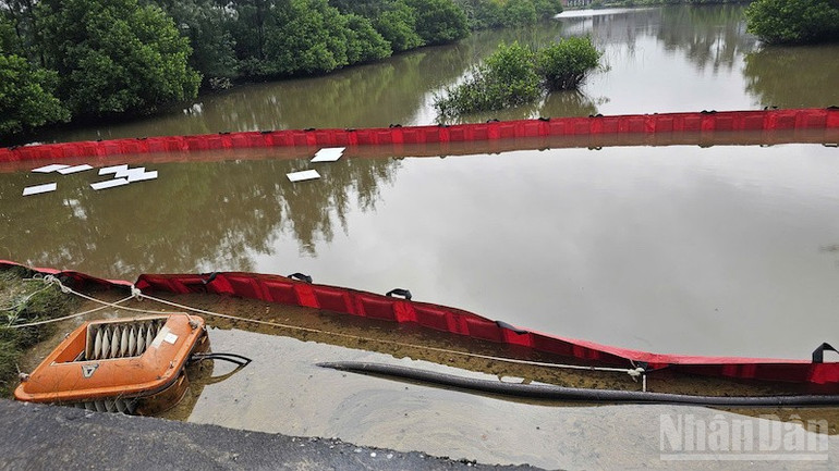 Bên cạnh đó, đơn vị phối hợp với chính quyền địa phương và lực lượng chuyên môn huy động, sử dụng phương tiện, thiết bị chuyên dụng để khoanh vùng khu vực bị ảnh hưởng thu gom dầu tràn theo đúng quy trình kỹ thuật; triển khai các biện pháp xử lý môi trường giảm thiểu tác động đến hệ sinh thái. Đến nay, các đơn vị đã khoanh vùng, ngăn chặn không để dầu lan rộng.