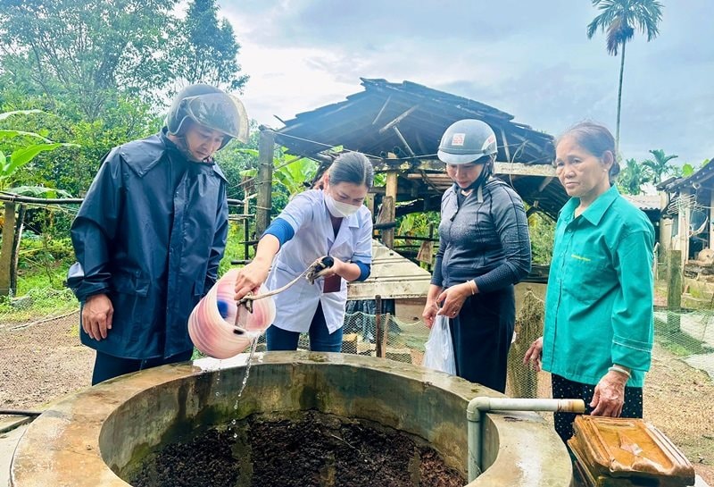 Khử khuẩn các giếng nước bị ngập, nhằm phòng ngừa dịch bệnh đường ruột.