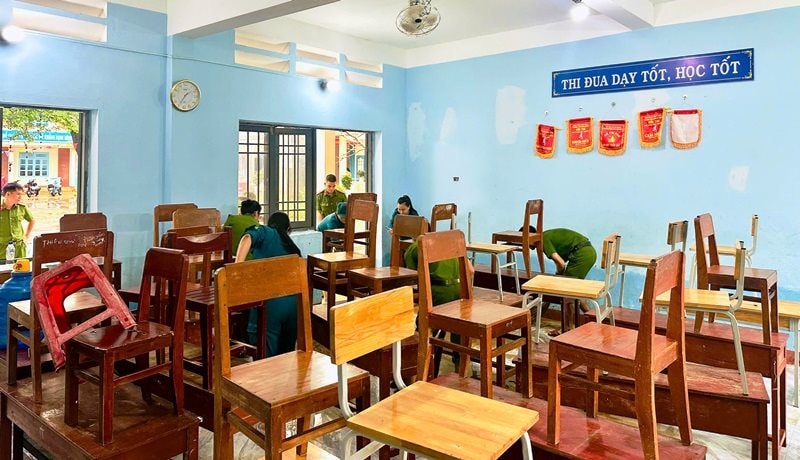 Do chủ động từ trước, bàn ghế của học sinh được kê cao nên không gây thiệt hại khi nước lũ dâng.