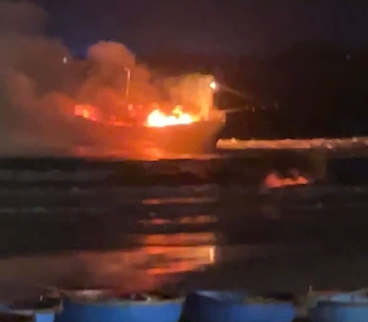 Hiện trường cháy tàu cá trong đêm 11-4