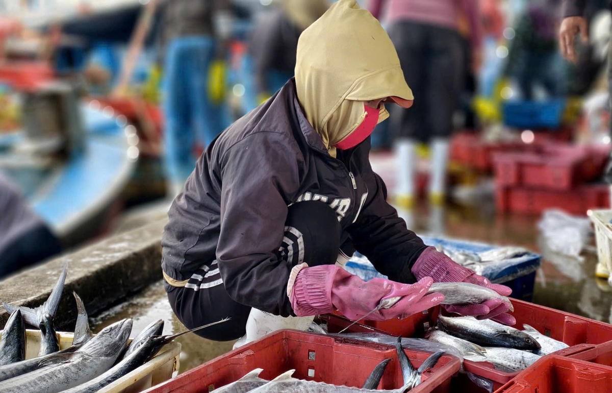 Cá về nhiều kéo theo nhu cầu lao động bốc xếp, phân loại tăng cao, với mức thu nhập 400.000 đến 500.000 đồng/ngày trong những ngày cao điểm.