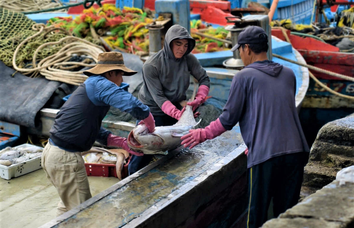 Ngư dân Quảng Ngãi vận chuyển cá lên bờ. Ảnh: CV.