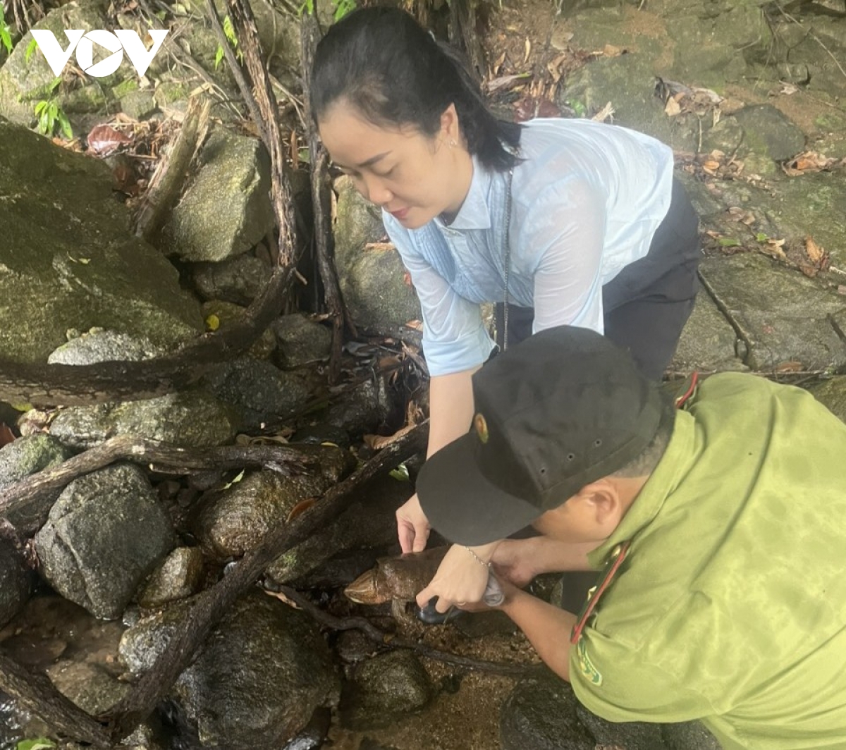 Thả cá thể rùa đầu to về lại tự nhiên.