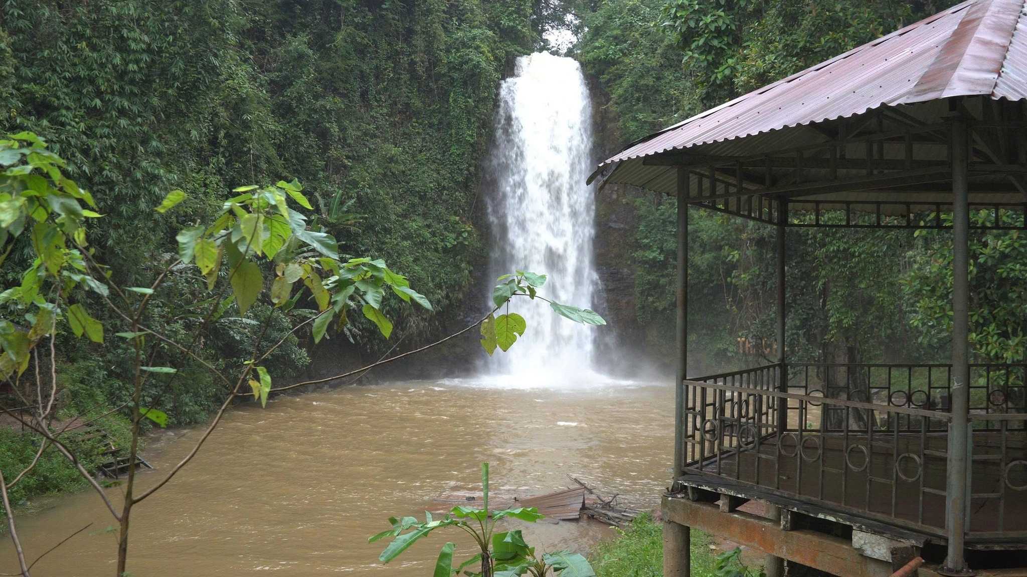 Thác Pa Sỹ tạm dừng đón khách do mưa lũ. Ảnh: Trang Thông tin xã Măng Đen
