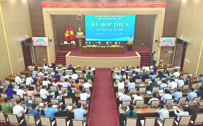 Quang cảnh kỳ họp thứ 6 của HĐND tỉnh Quảng Ngãi hóa XIII, nhiệm kỳ 2021- 2026.