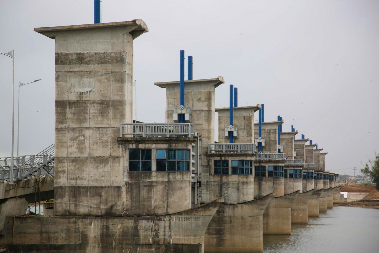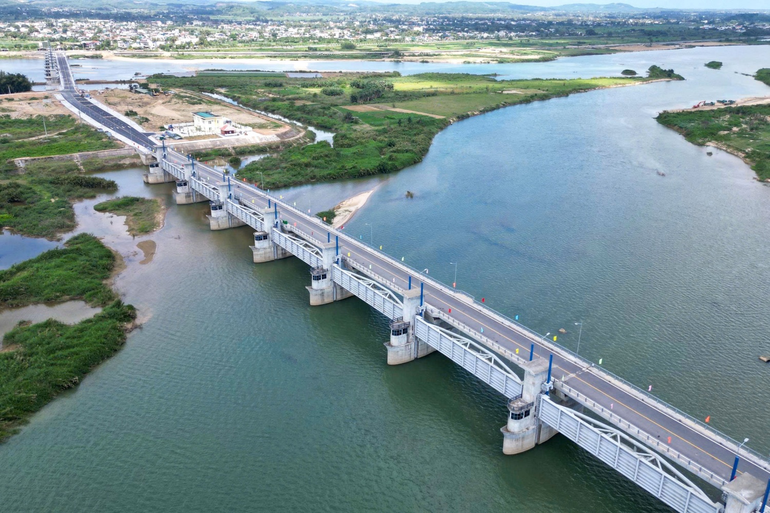 Toàn cảnh dự án cầu giao thông đập dâng hạ lưu sông Trà Khúc.
