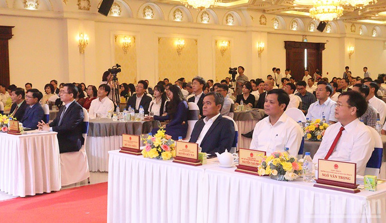 Lãnh đạo tỉnh Quảng Ngãi cùng các nhà đầu tư, doanh nghiệp, doanh nhân tham dự hội nghị.