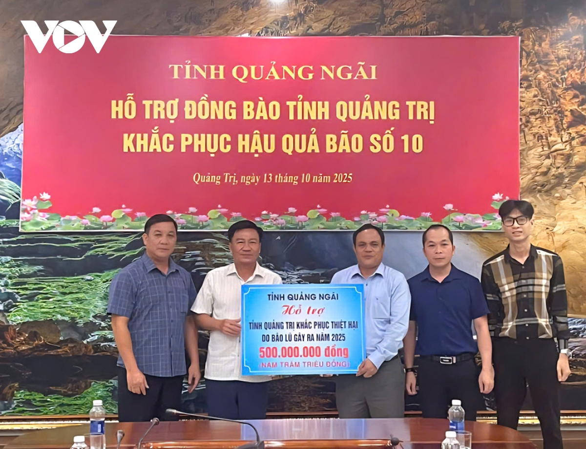 Trước đó, Đoàn công tác của Ủy ban Mặt trận Tổ quốc Việt Nam tỉnh Quảng Ngãi đã đến thăm và trao tiền hỗ trợ nhân dân 2 tỉnh Quảng Trị và Hà Tĩnh, mỗi tỉnh 500 triệu đồng.