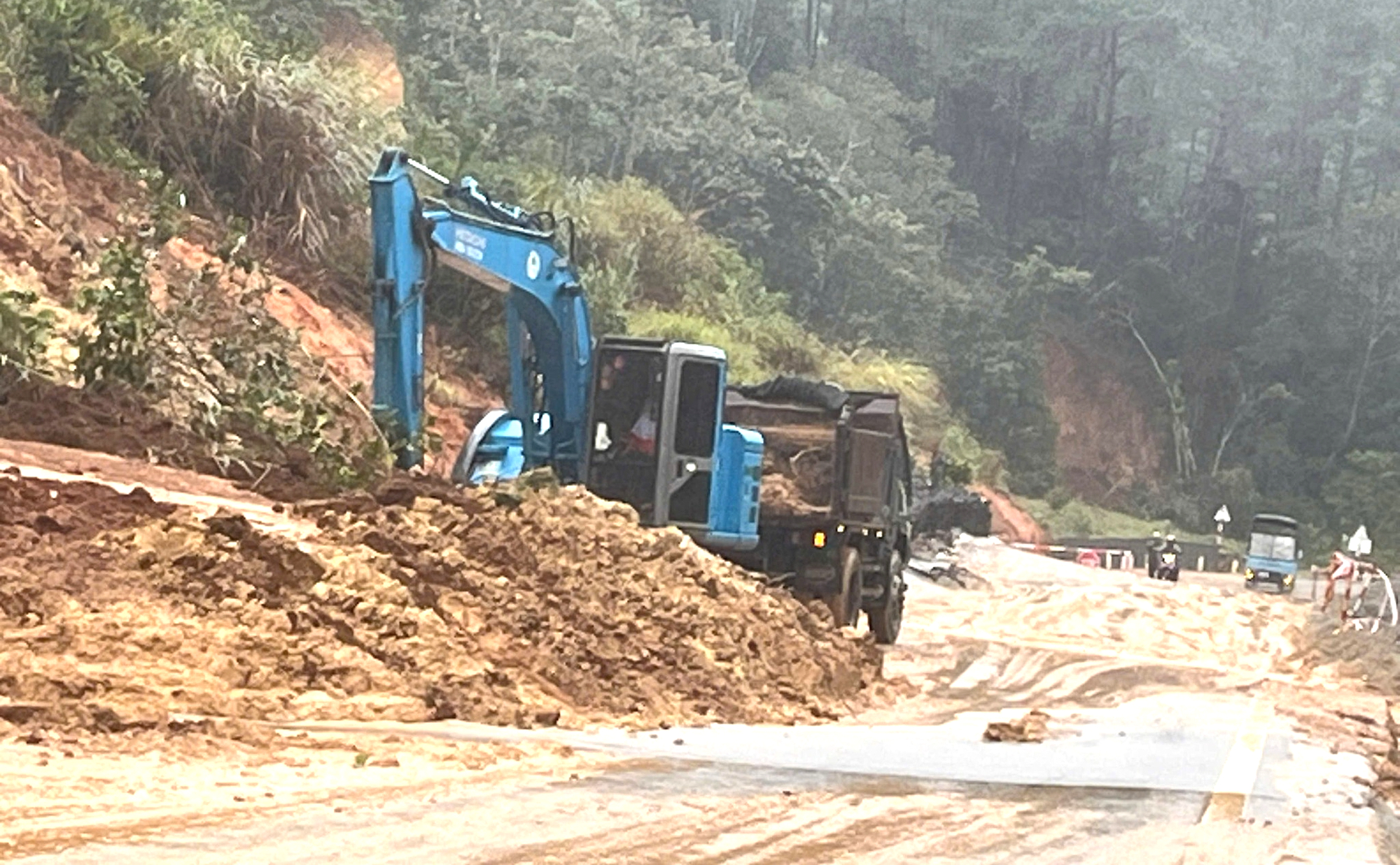 Ghi nhận trên tuyến vào đầu tháng 1 cho thấy, dọc đường rất nhiều biển cảnh báo sạt lở. Một số vị trí cơ quan chức năng vẫn giăng dây phản quang cảnh báo người đi đường. Tại các vị trí xảy ra sạt lở lớn, bùn đất chỉ hốt dọn tạm thời, chưa khắc phục triệt để. Nhiều điểm phương tiện qua lại khó khăn.