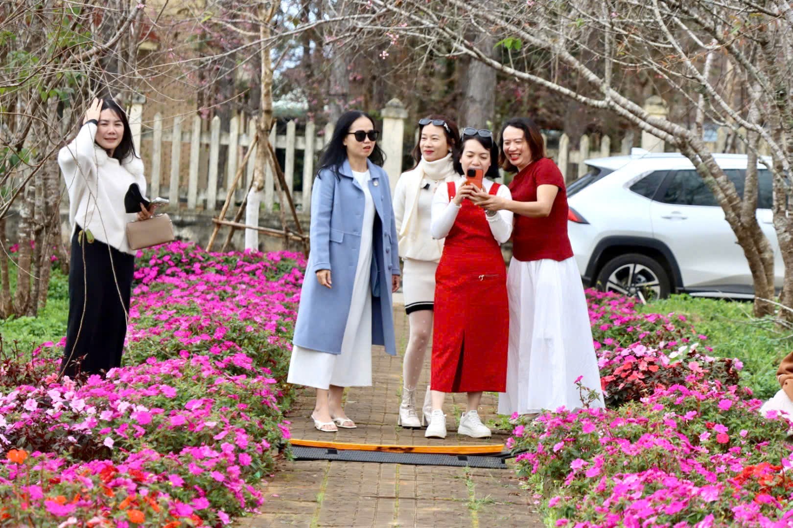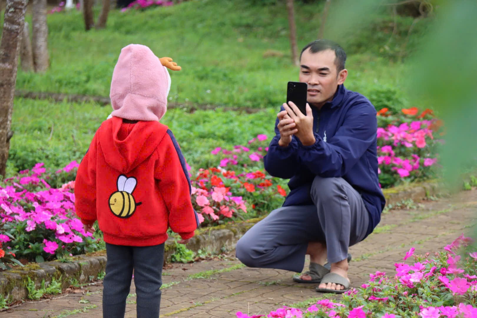 Du khách tham quan, chụp ảnh giữa không gian hoa rực rỡ tại Khu du lịch Măng Đen.