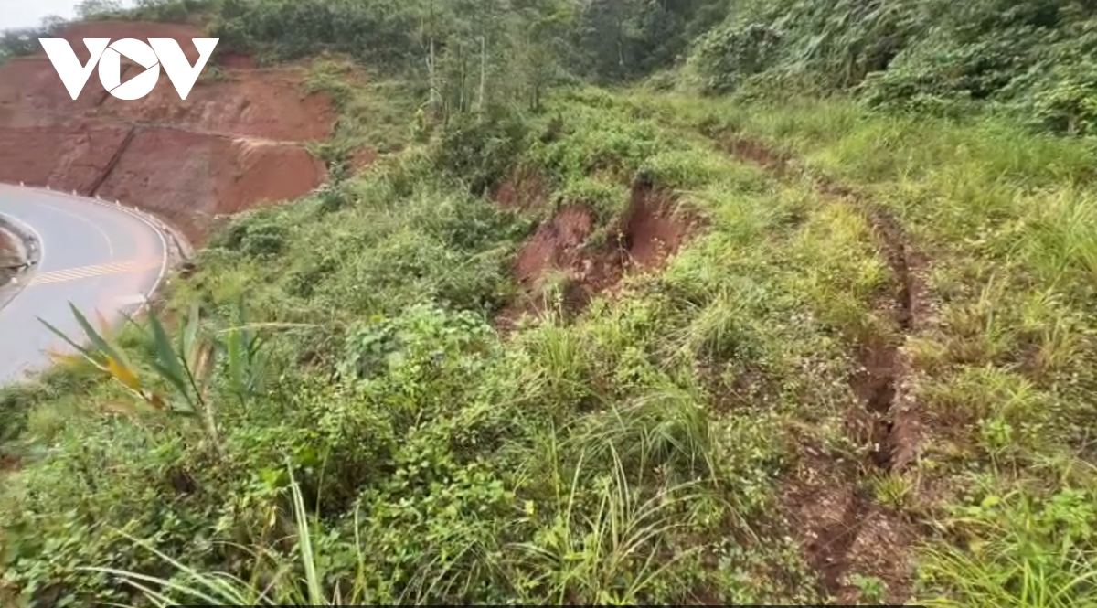 Vết nứt dài trên taluy dương Quốc lộ 24.