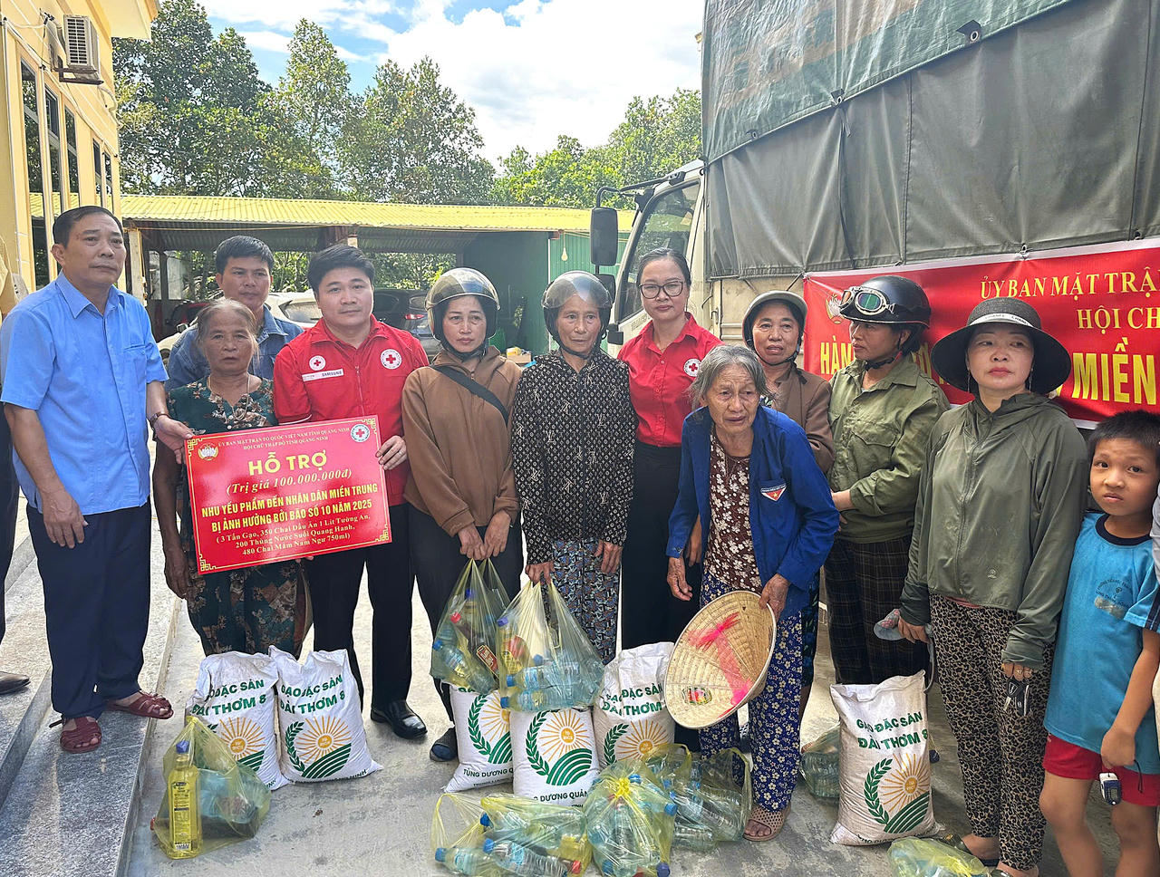 Đoàn công tác của Ủy ban MTTQ Việt Nam tỉnh, Hội Chữ Thập đỏ tỉnh Quảng Ninh đã khẩn trương đi trao 16 tấn hàng nhu yếu phẩm đến xã Tân An (tỉnh Nghệ An) và xã Tượng Lĩnh (tỉnh Thanh Hóa) nhằm kịp thời chia sẻ, hỗ trợ đồng bào bị thiệt hại do thiên tai bão lũ sớm vượt qua khó khăn, ổn định cuộc sống.