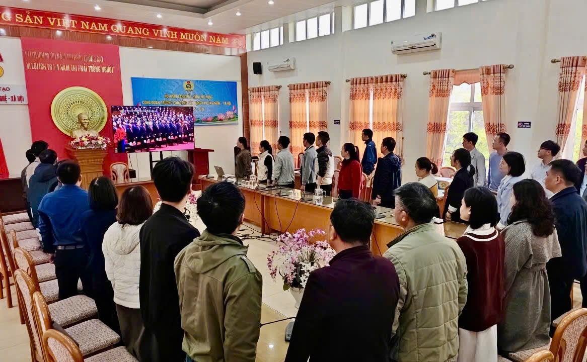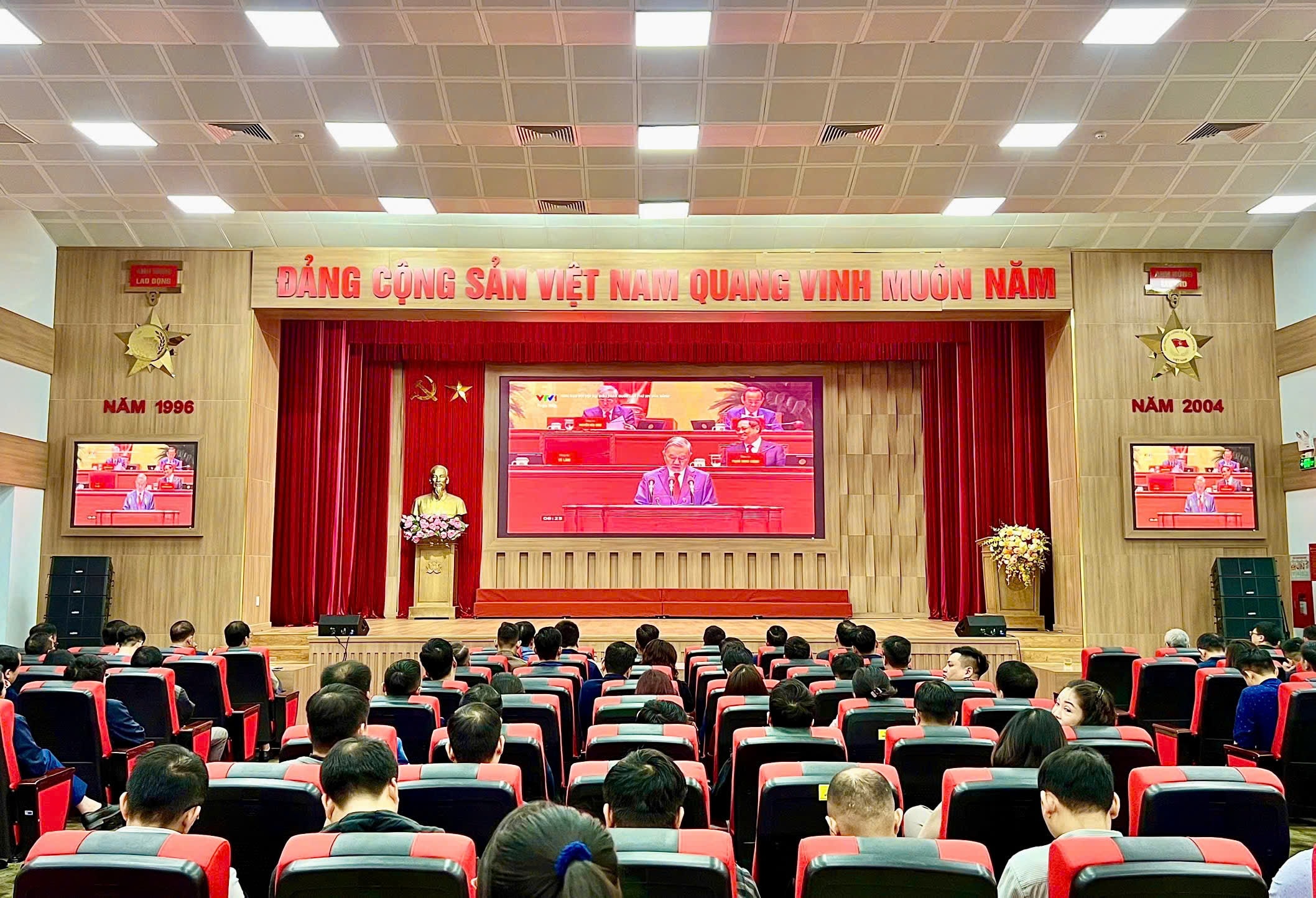 Cán bộ, đảng viên tại các cơ quan đơn vị dõi theo các nội dung, chương trình phiên khai mạc trọng thể Đại hội
