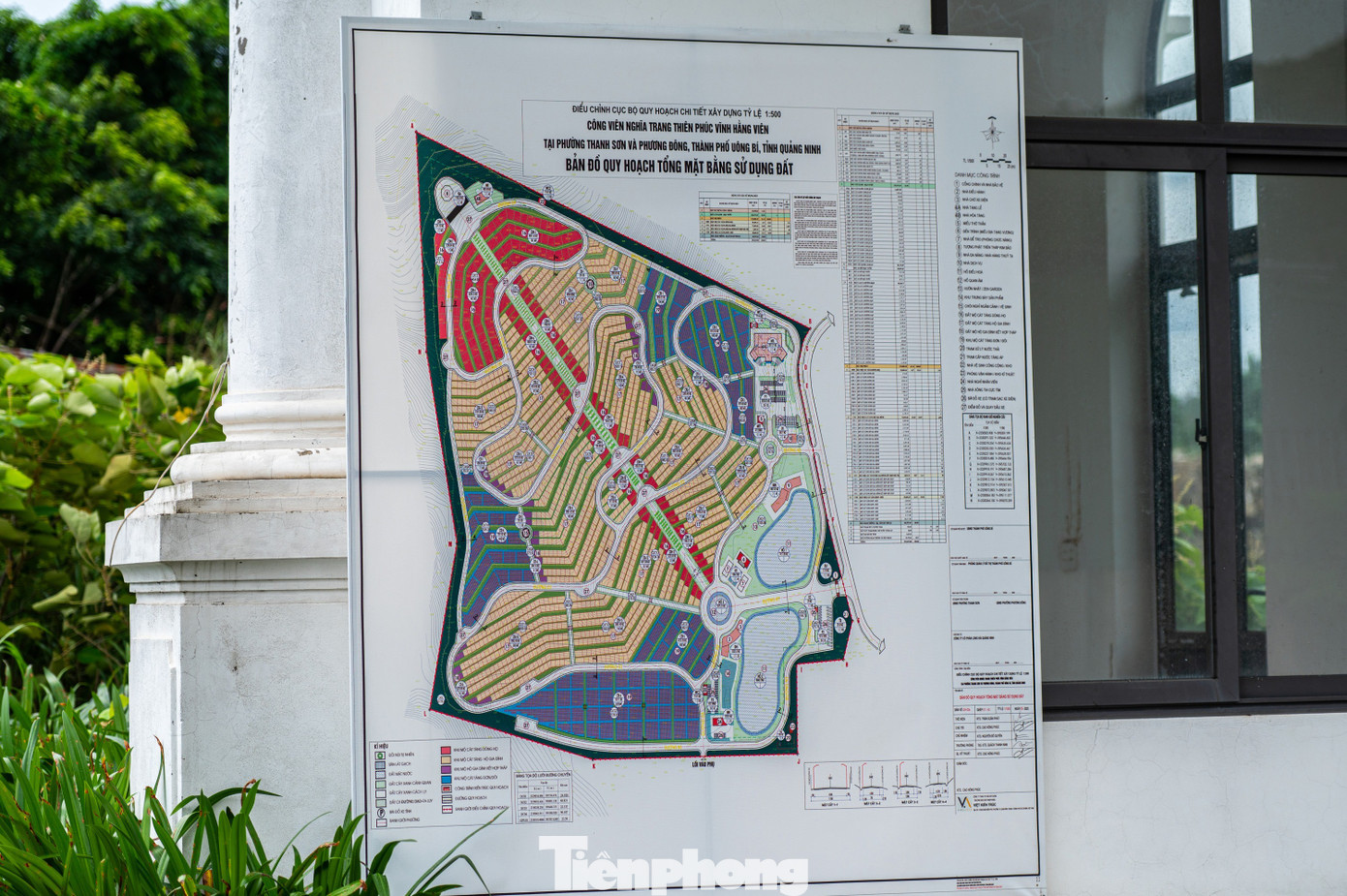 Trên bảng thông tin duy nhất nằm tại cổng, dự án có tên Công viên nghĩa trang Thiên Phúc Vĩnh Hằng Viên, quy mô giai đoạn 1 rộng khoảng 32 ha gồm các hạng mục: Khu nhà điều hành, nhà tang lễ và hỏa táng, nhà nguyện, nhà để tro và nghỉ chờ, hồ điều hòa, cây xanh, xử lý thải, bãi đỗ xe, đường giao thông...