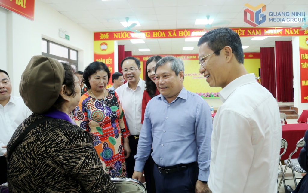 Bí thư Tỉnh ủy, Trưởng Đoàn ĐBQH tỉnh Vũ Đại Thắng trò chuyện với nhân dân khu Yết Kiêu 2, phường Hồng Gai.