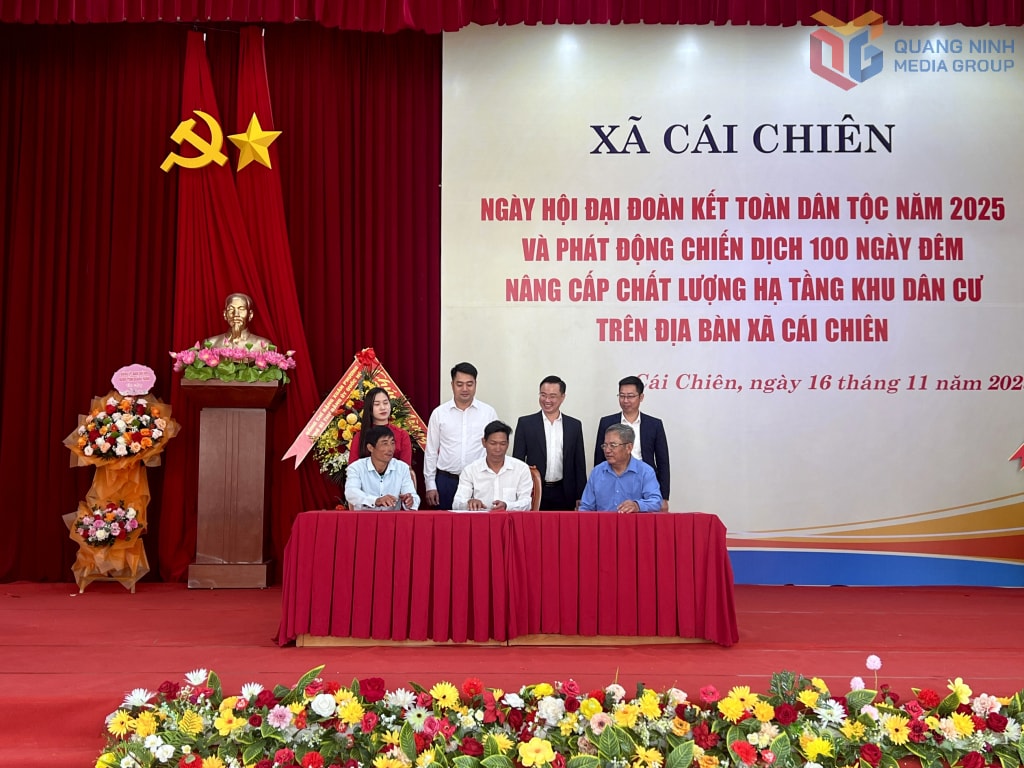 Tại Ngày hội đại đoàn kết toàn dân tộc năm 2025, xã Cái Chiên đã khen thưởng 10 hộ gia đình gương mẫu hiến đất làm đường nâng cấp hạ tầng trên địa bàn xã; các gia đình đạt danh hiệu gia đình văn hóa và tổ chức ký giao ước thi đua thực hiện chiến dịch 100 ngày đêm nâng cấp chất lượng hạ tầng khu dân cư trên địa bàn.