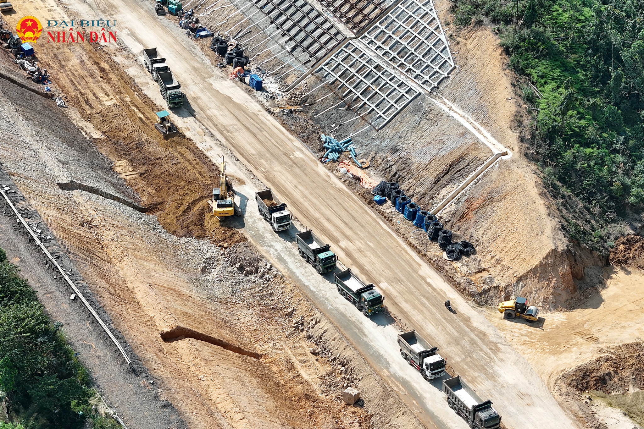 Đối với phần đường, khối lượng đào đắp nền đạt khoảng 82%
