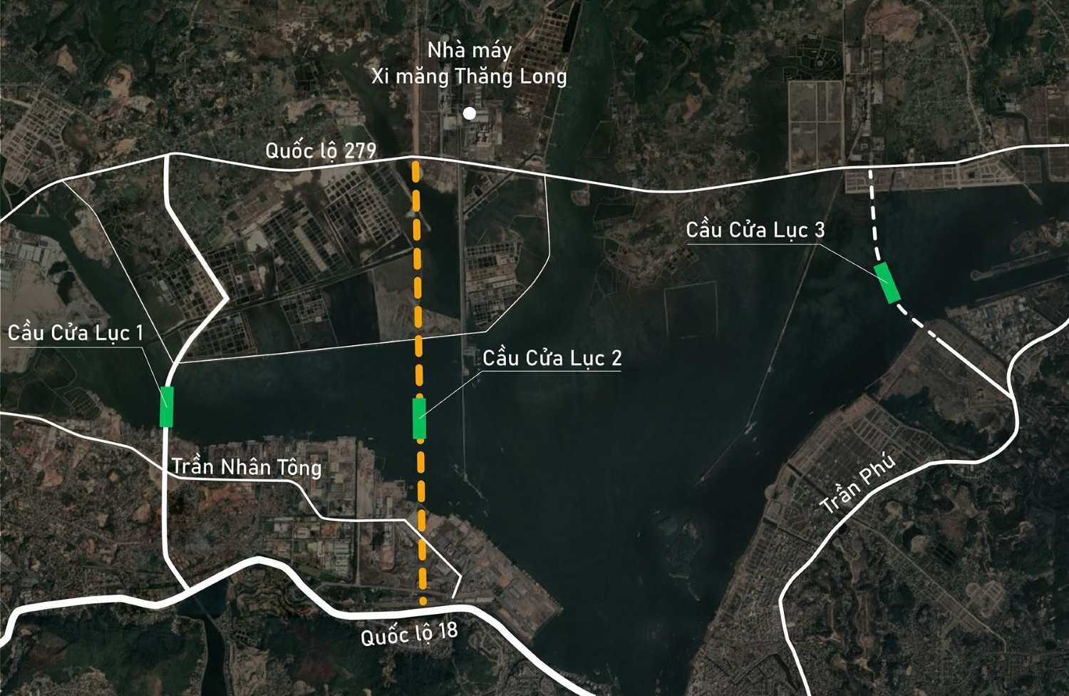 Theo định hướng quy hoạch, dự án cầu Cửa Lục 2 có tổng chiều dài khoảng 3,5km, bao gồm cả phần đường dẫn. Cây cầu này được thiết kế để kết nối trực tiếp Quốc lộ 279 với Quốc lộ 18, đi ngang qua địa bàn phường Bãi Cháy. Về vị trí tuyến, công trình dự kiến sẽ được xây dựng song song với hệ thống băng tải của Nhà máy xi măng Thăng Long. Việc lựa chọn vị trí này nhằm đảm bảo tính đồng bộ trong tổ chức không gian kiến trúc và hạ tầng kỹ thuật của khu vực ven vịnh.