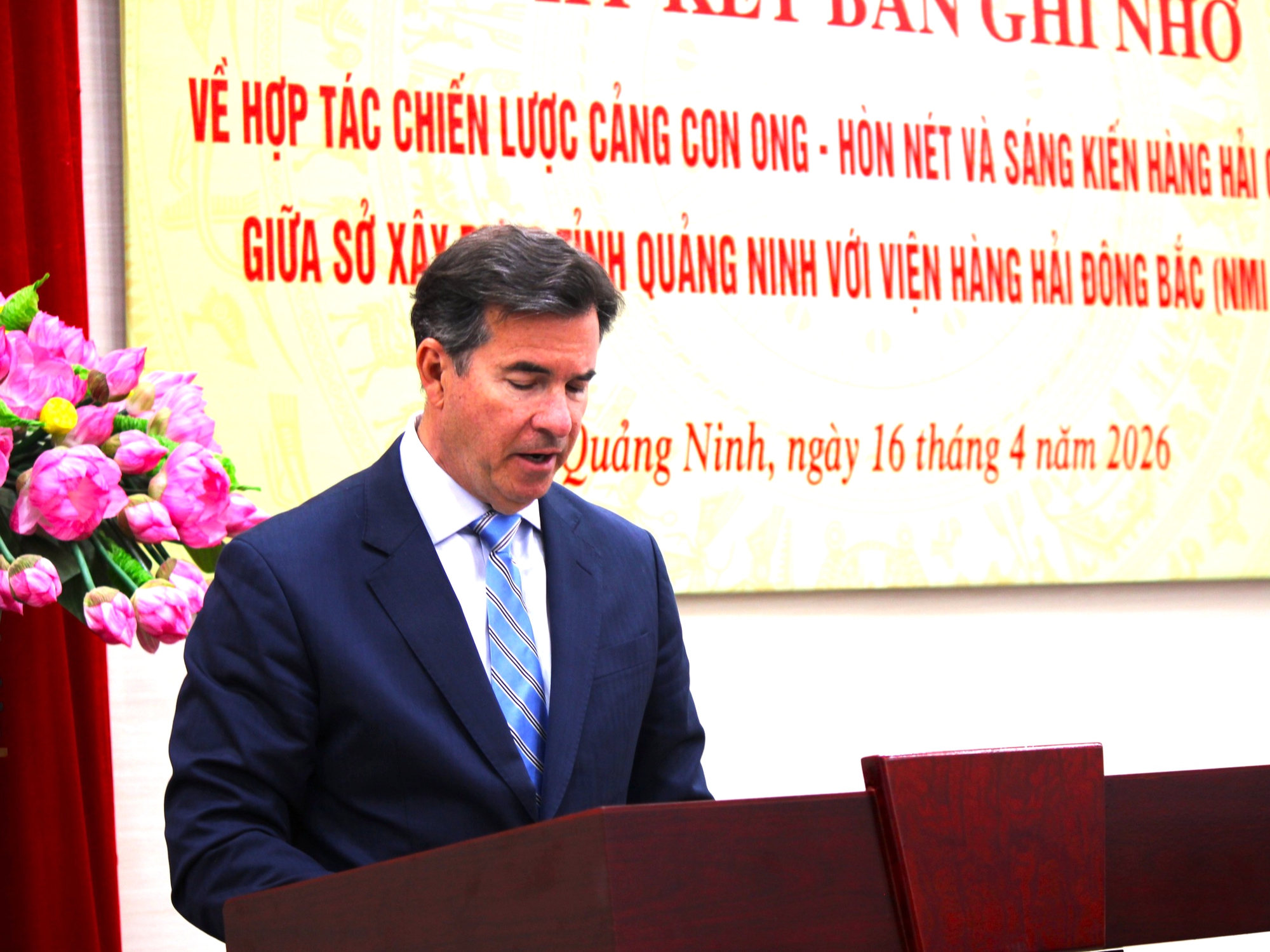 Phát biểu tại buổi lễ, ông Eric R. Dawicki, Chủ tịch Viện Hàng hải Đông Bắc (NMI), đánh giá cao tiềm năng phát triển kinh tế biển của Quảng Ninh, đặc biệt là tầm nhìn chiến lược gắn phát triển với bảo vệ môi trường.