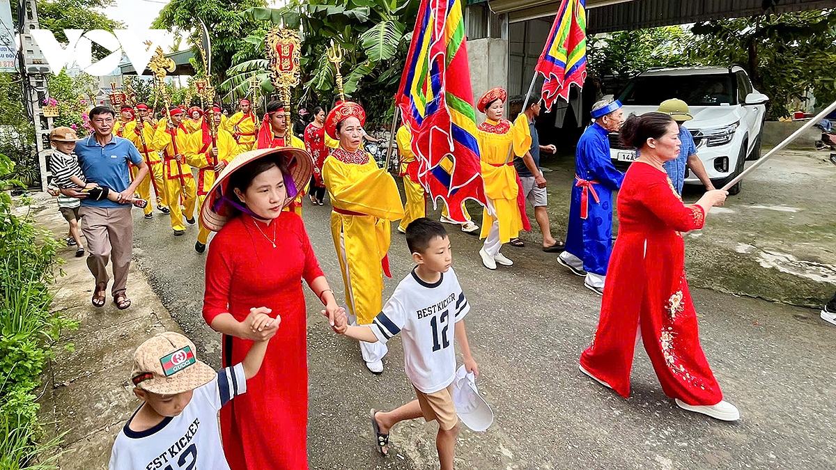 Người dân phường Liên Hòa tham gia lễ rước trong lễ giỗ Hưng Đạo Đại Vương. Lễ giỗ tổ chức tại các di tích trong Khu di tích quốc gia đặc biệt Bạch Đằng, tỉnh Quảng Ninh.