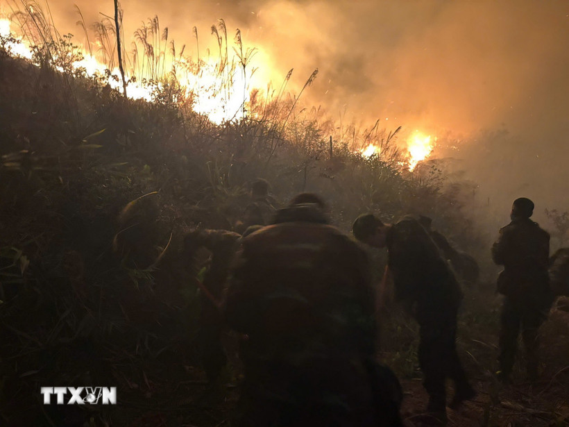 Hiện trường vụ cháy rừng. (Ảnh: Văn Đảm/TTXVN phát)