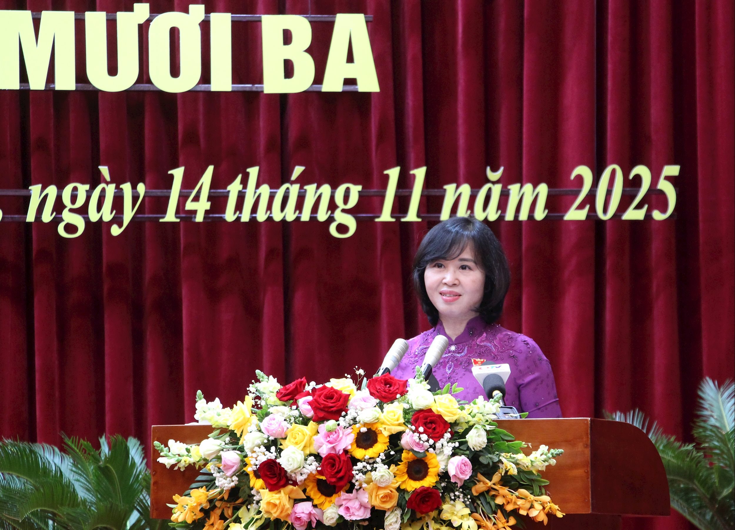 Phó Bí thư Thường trực Tỉnh ủy, Chủ tịch HĐND tỉnh Trịnh Thị Minh Thanh phát biểu tại kỳ họp. Ảnh: M. Trường