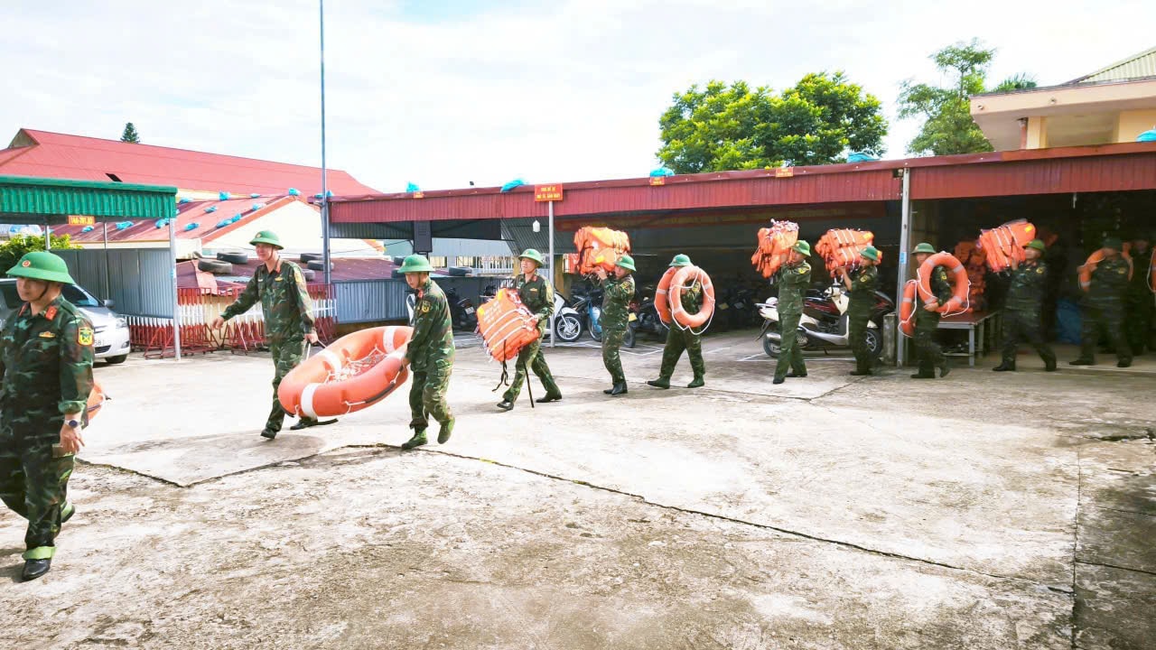 Lực lượng vũ trang chuẩn bị sẵn sàng phương tiện, thiết bị cứu hộ khi bão đến. Ảnh: Trần Ngọc Duẩn